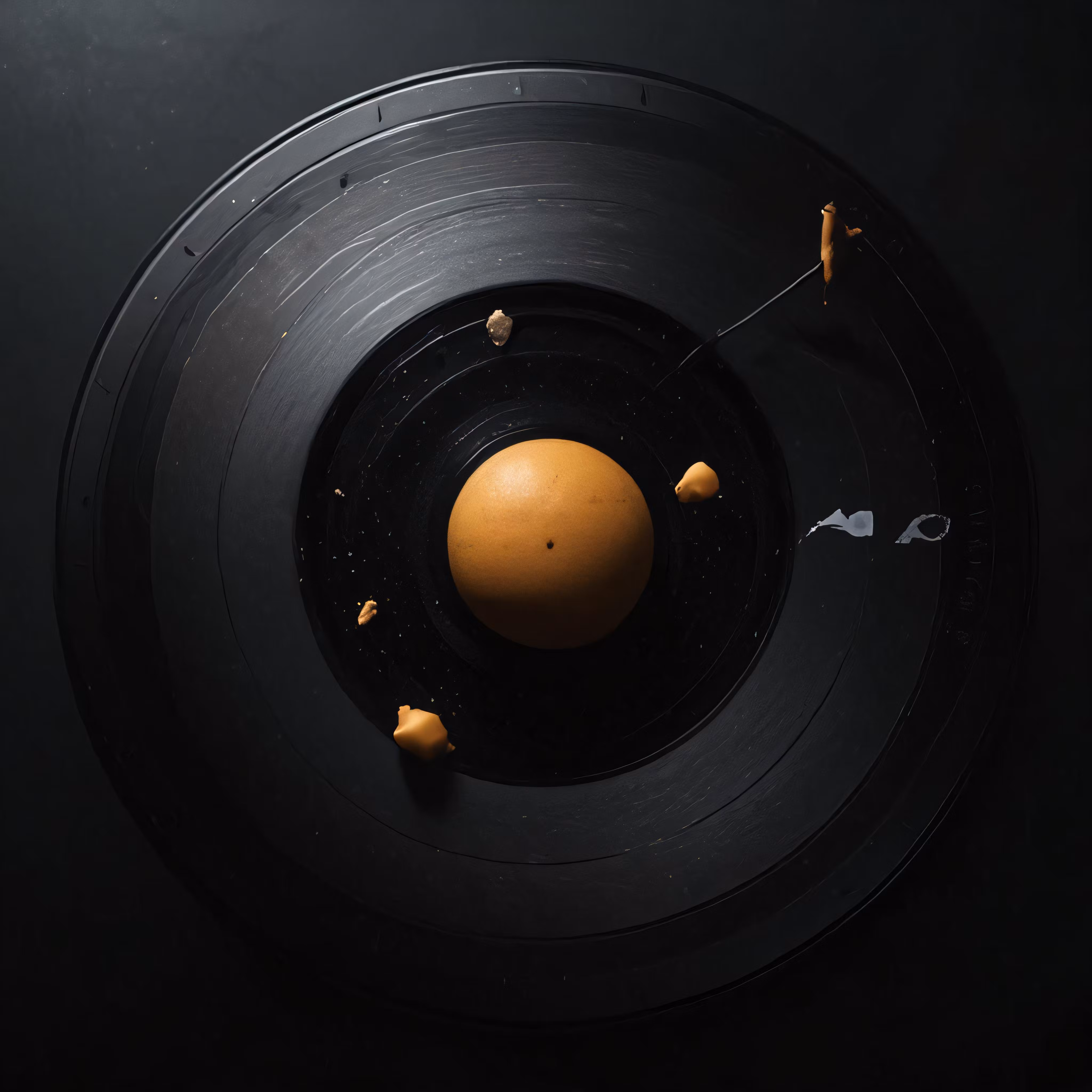 High resolution picture, free to use, an orange on a black surface being held by scissors