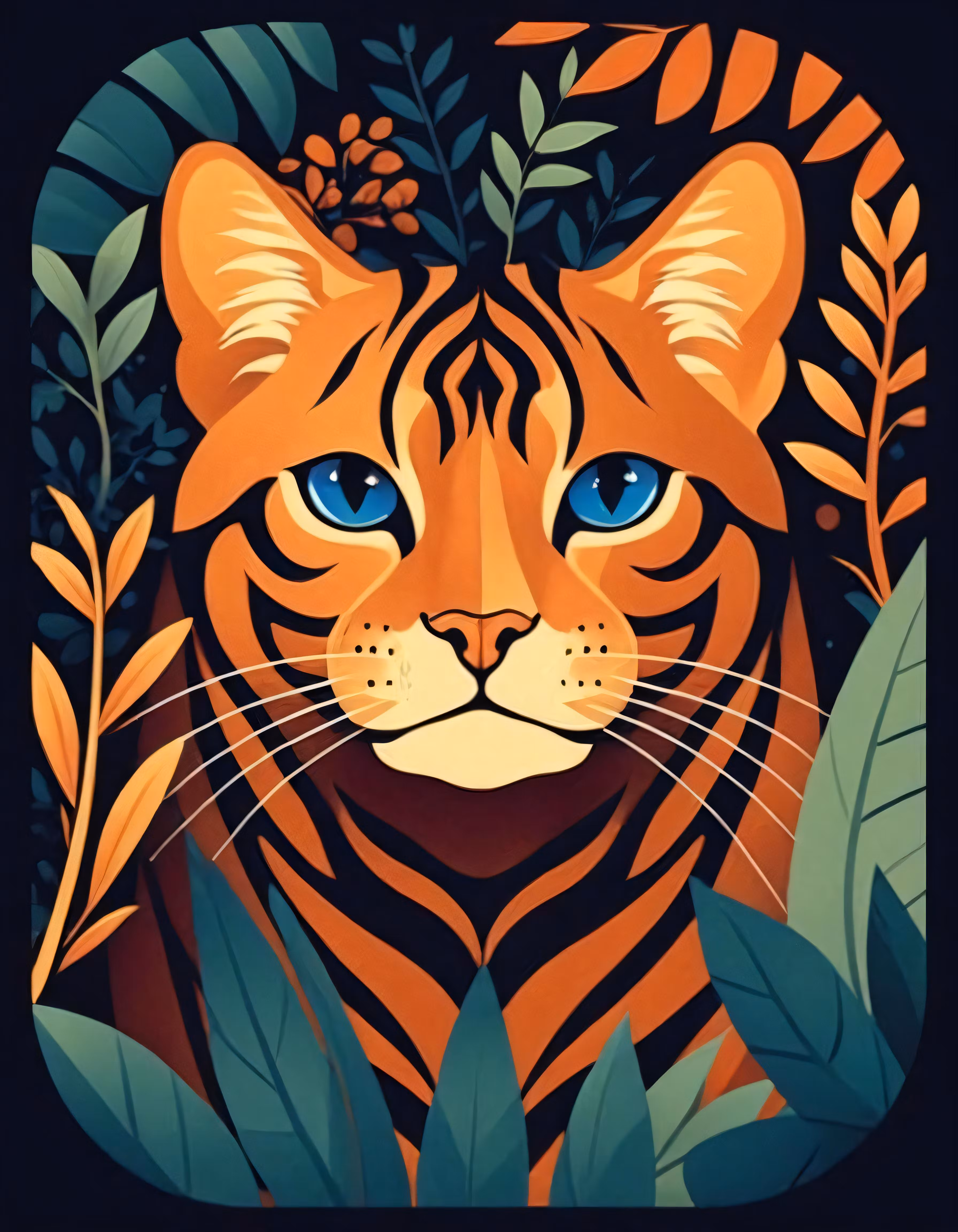 High resolution picture, free to use, an orange tiger in the jungle surrounded by plants