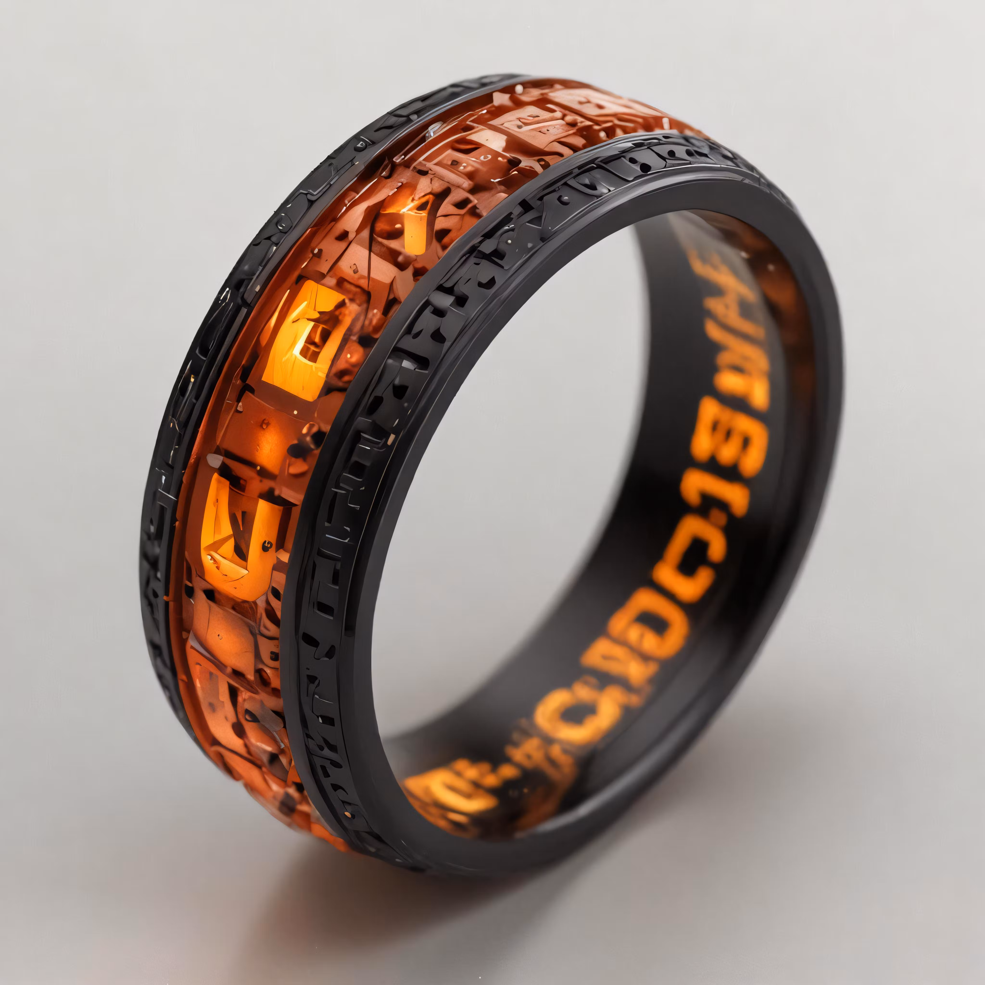 High resolution picture, free to use, an orange wedding ring with black wheels