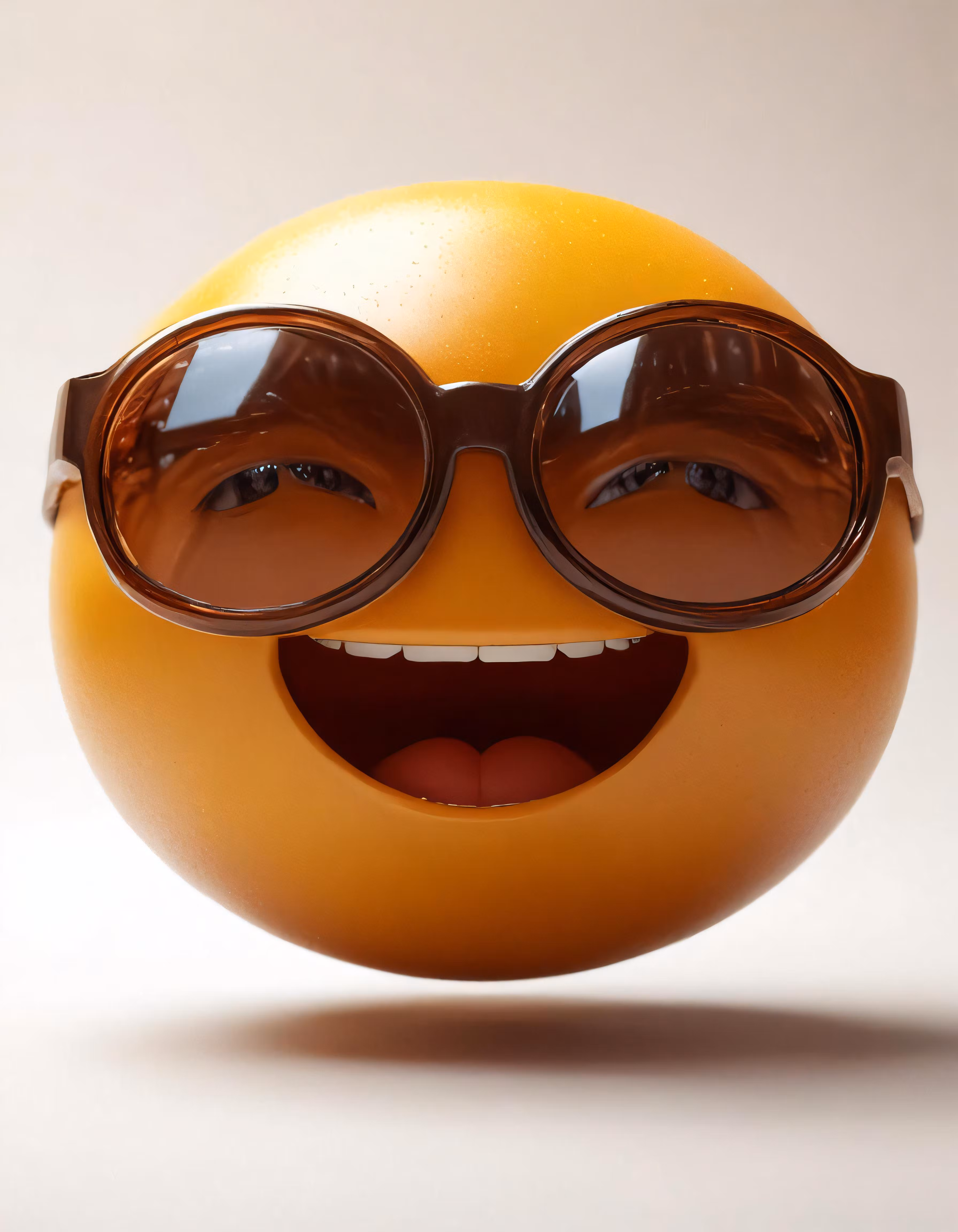 High resolution picture, free to use, an orange with glasses showing that it is not allowed to wear a mask