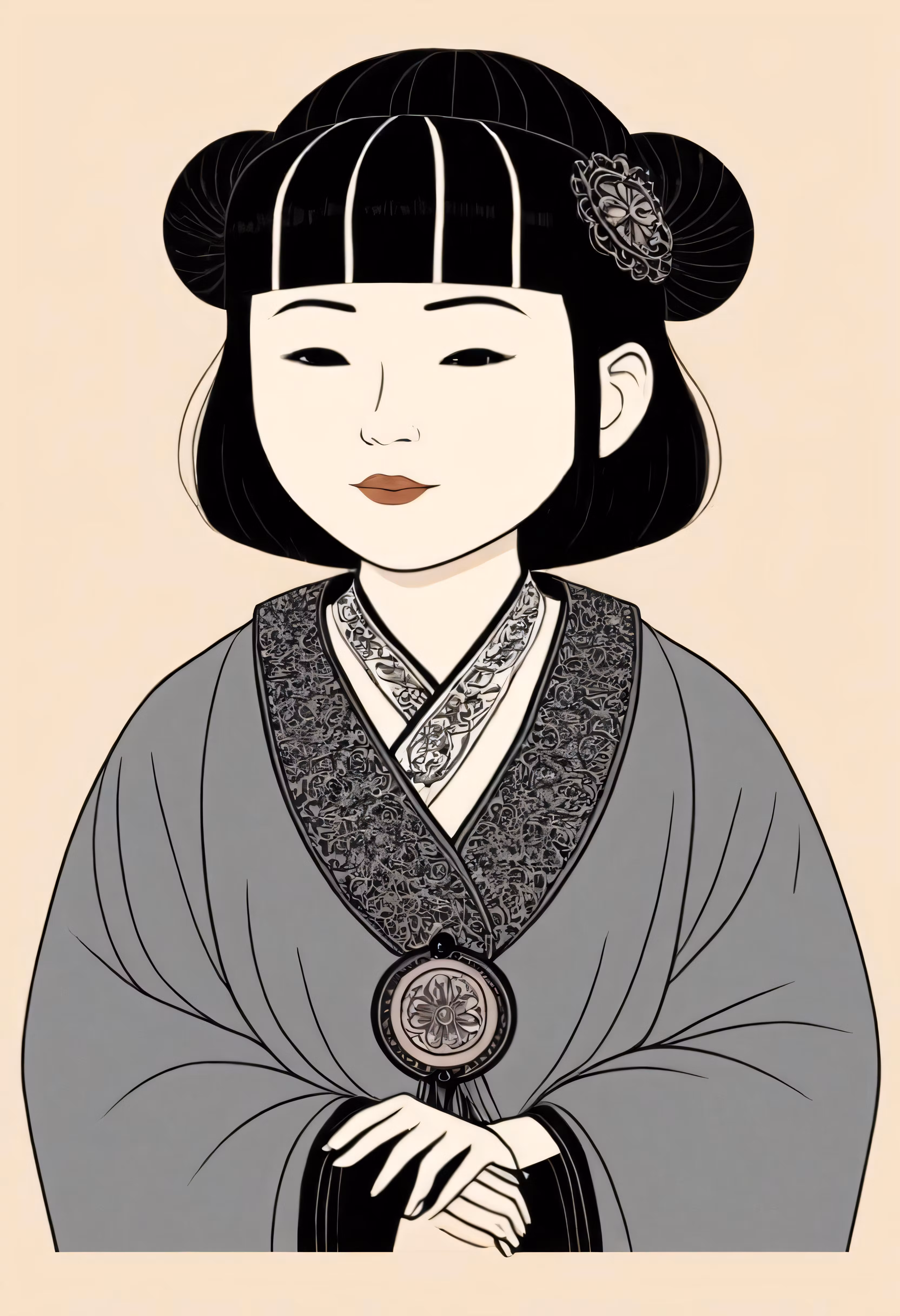 High resolution picture, free to use, an oriental woman wearing black with white flowers on her hair