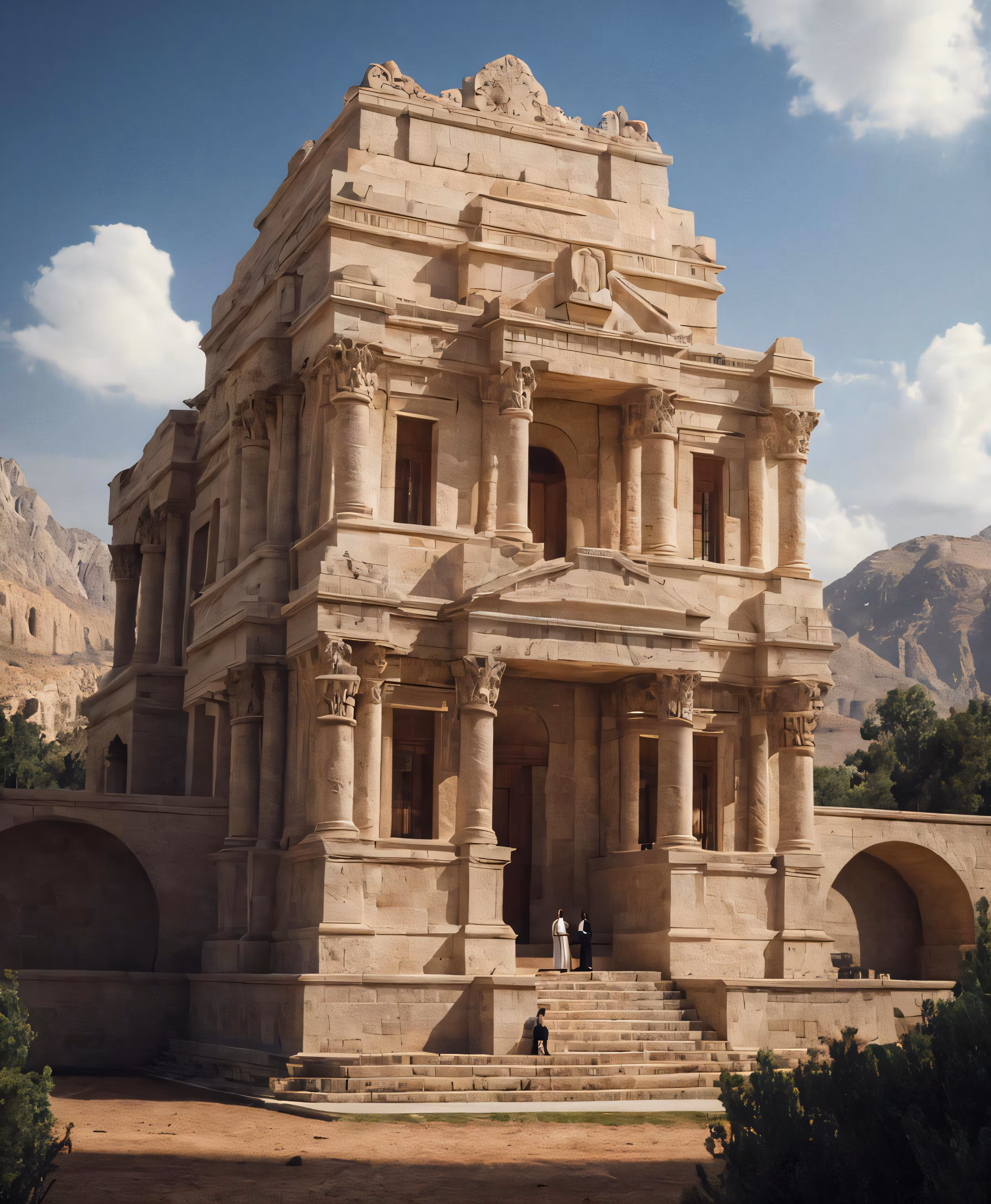 High resolution picture, free to use, an ornate building with many pillars and arches