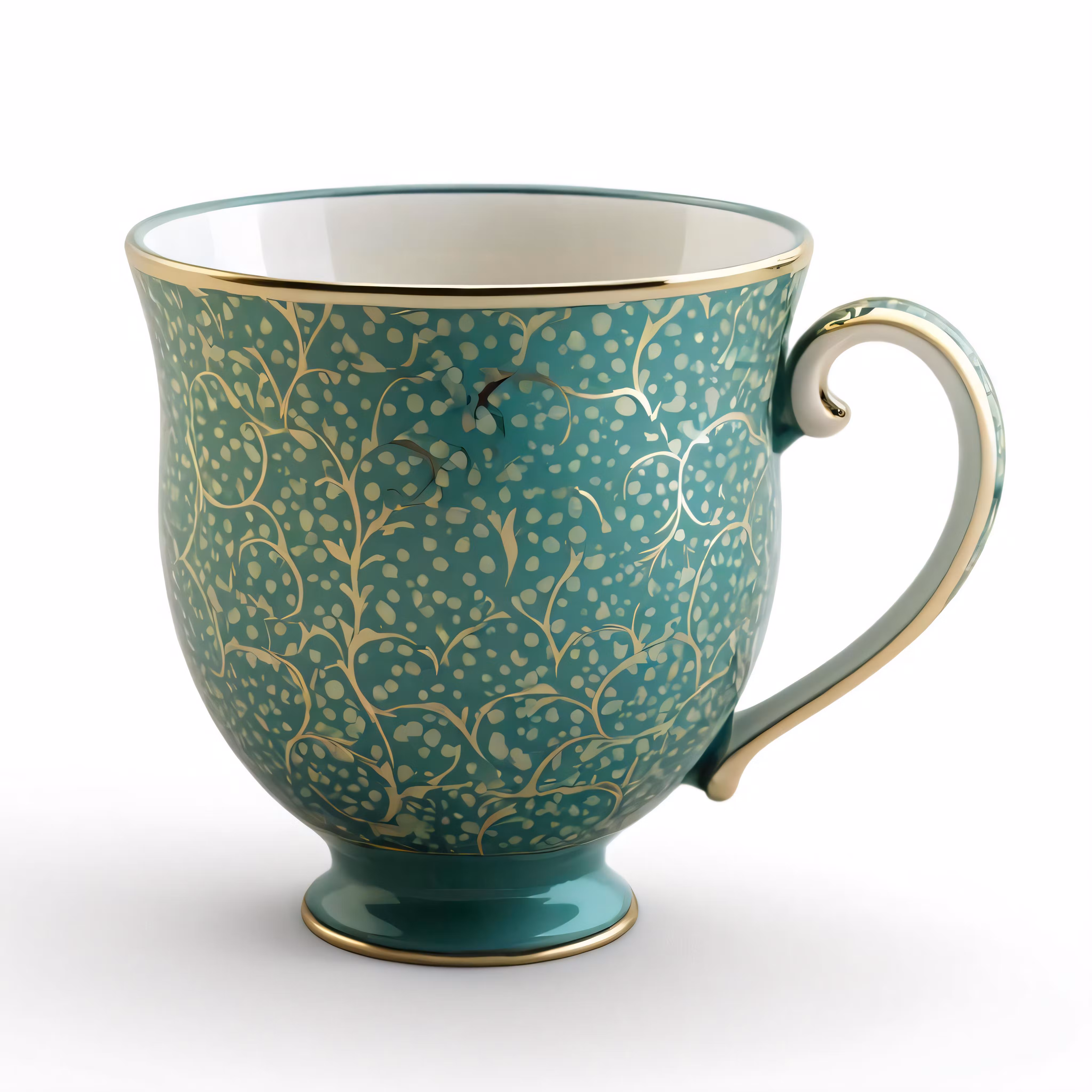 High resolution picture, free to use, an ornate cup is sitting on a white table