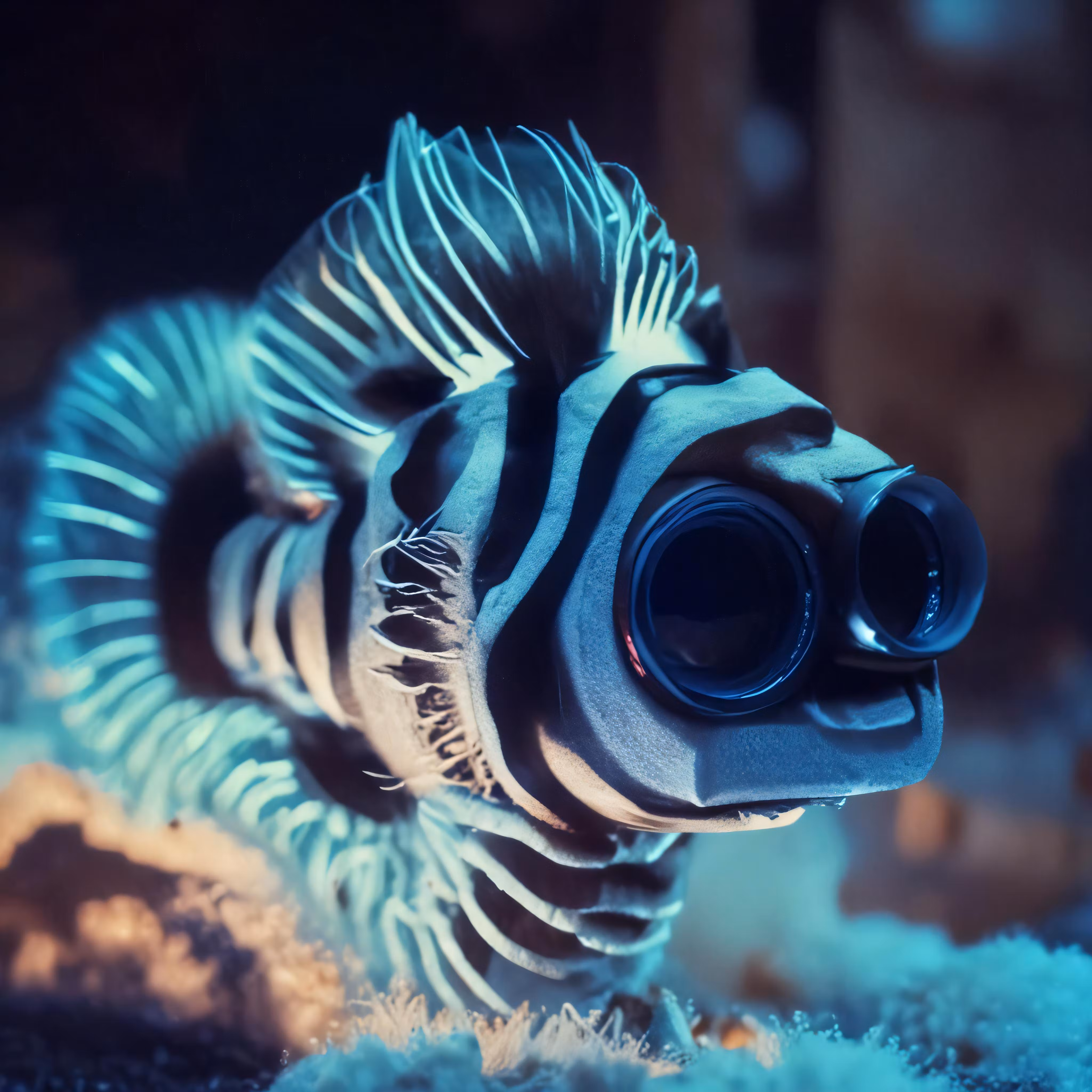 High resolution picture, free to use, an ornate fish is swimming near blue seaweed