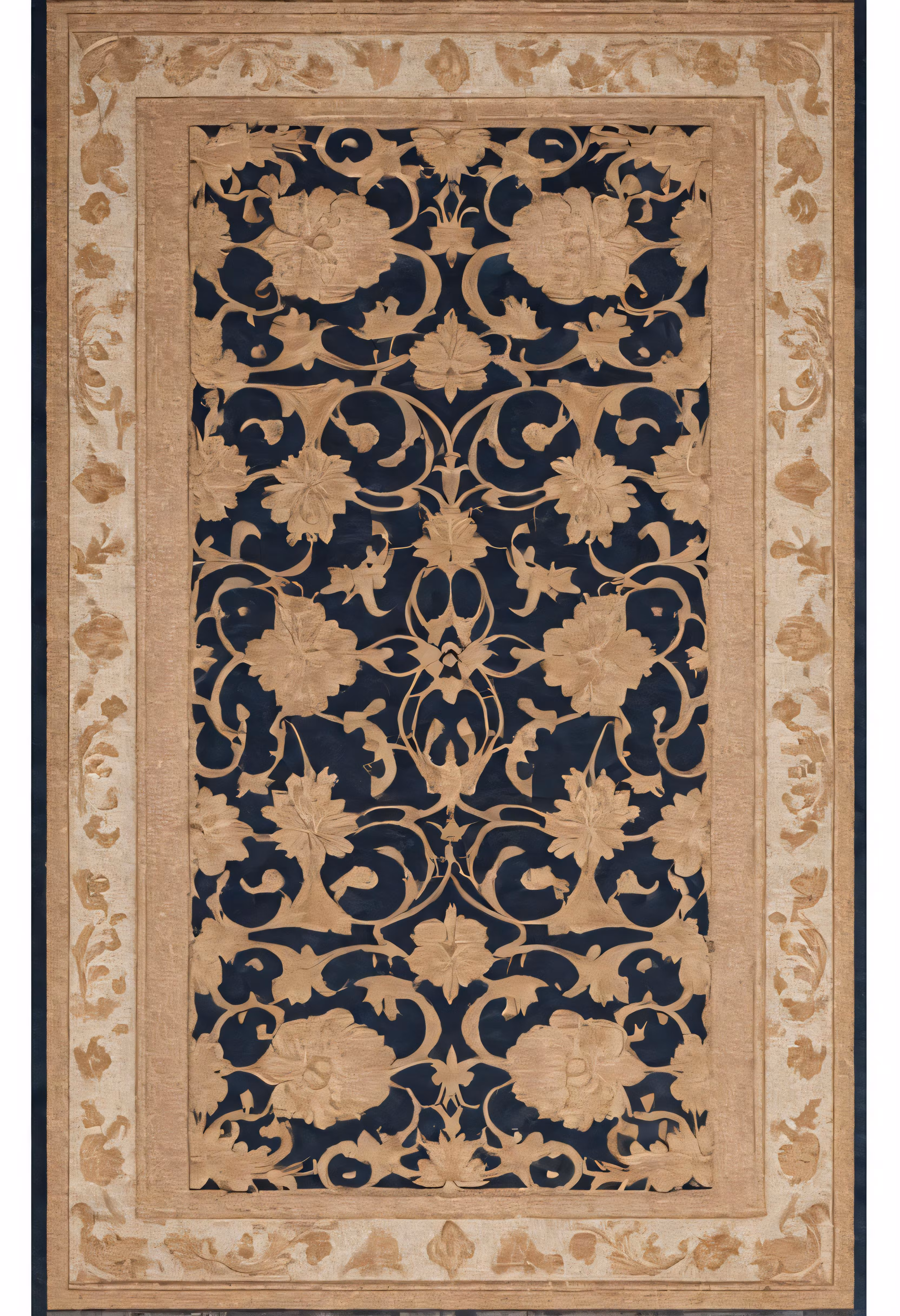 High resolution picture, free to use, an ornate rug with many decorative flowers and scrolls