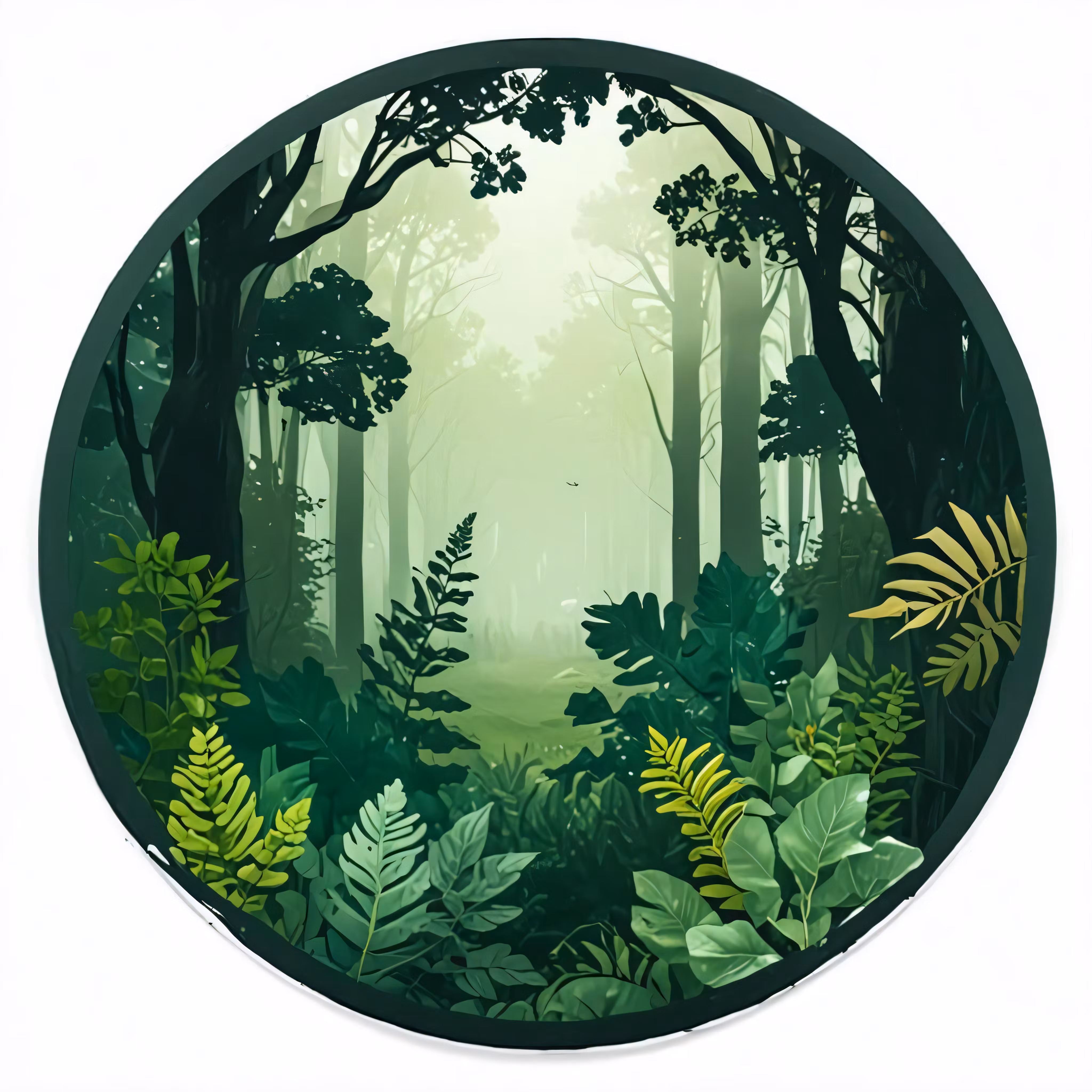 High resolution picture, free to use, an oval mirror in a forest with lots of foliage