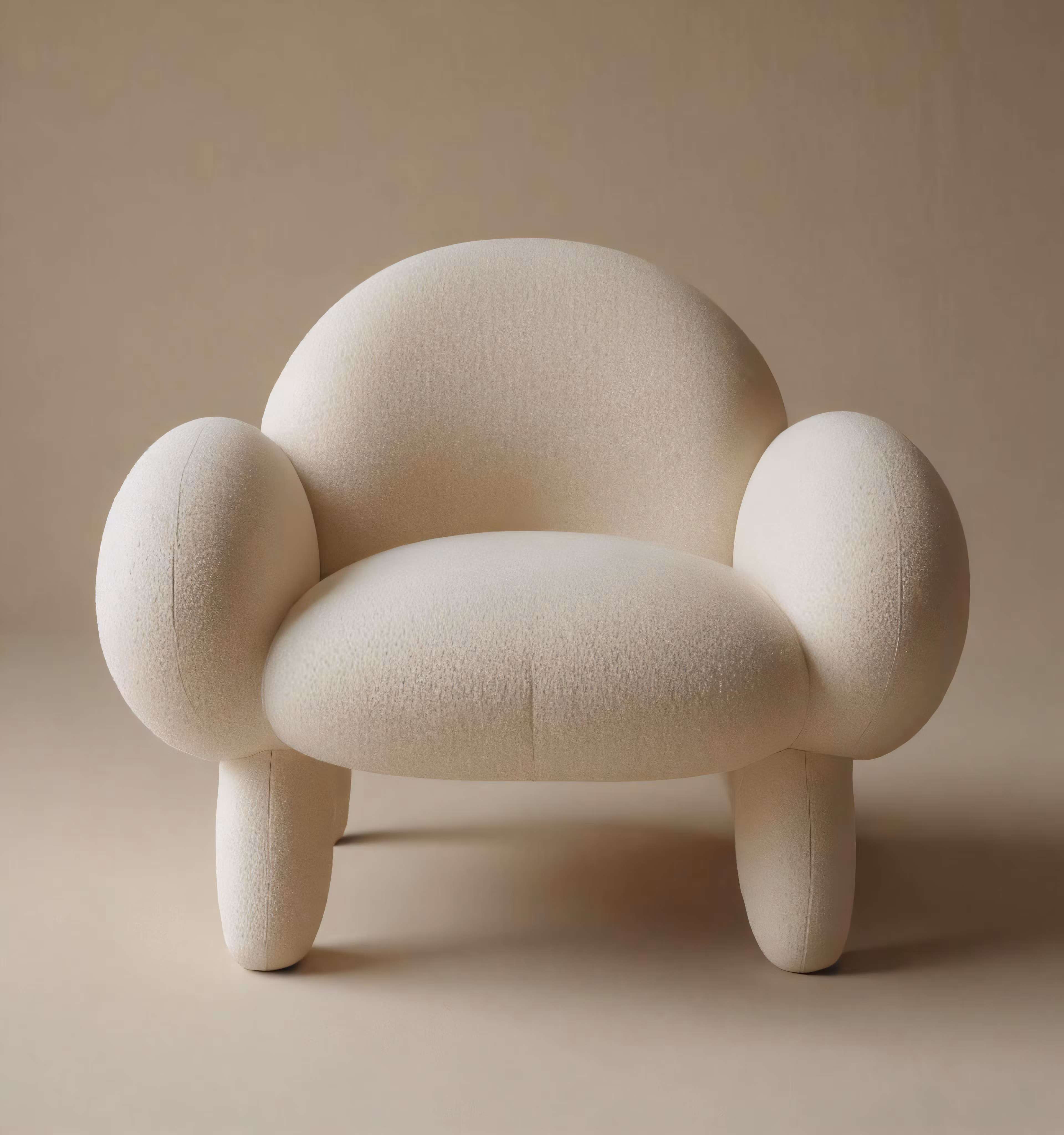 High resolution picture, free to use, an overstuffed chair with no legs sitting up against a plain background