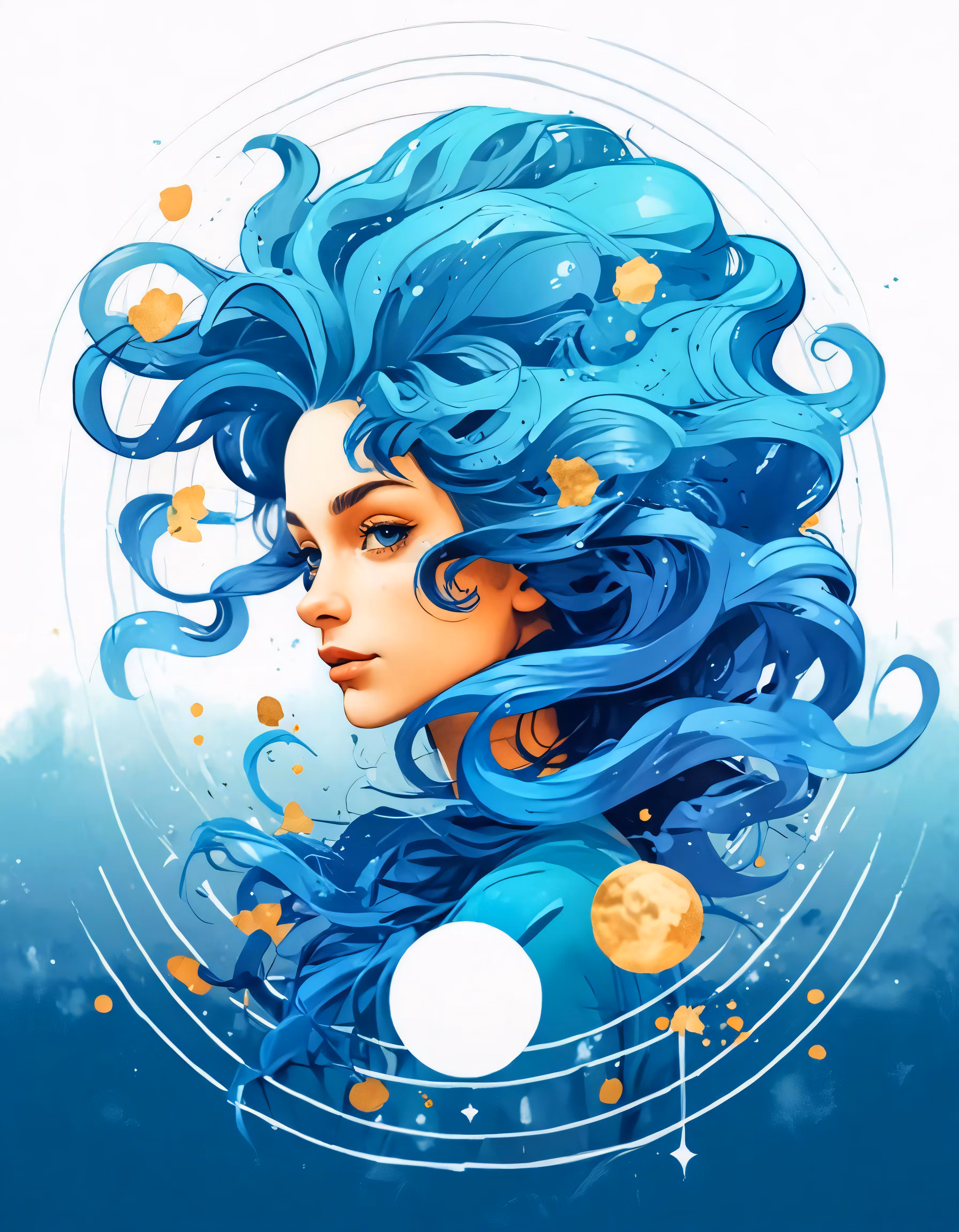 High resolution picture, free to use, an underwater illustration of a woman with blue hair