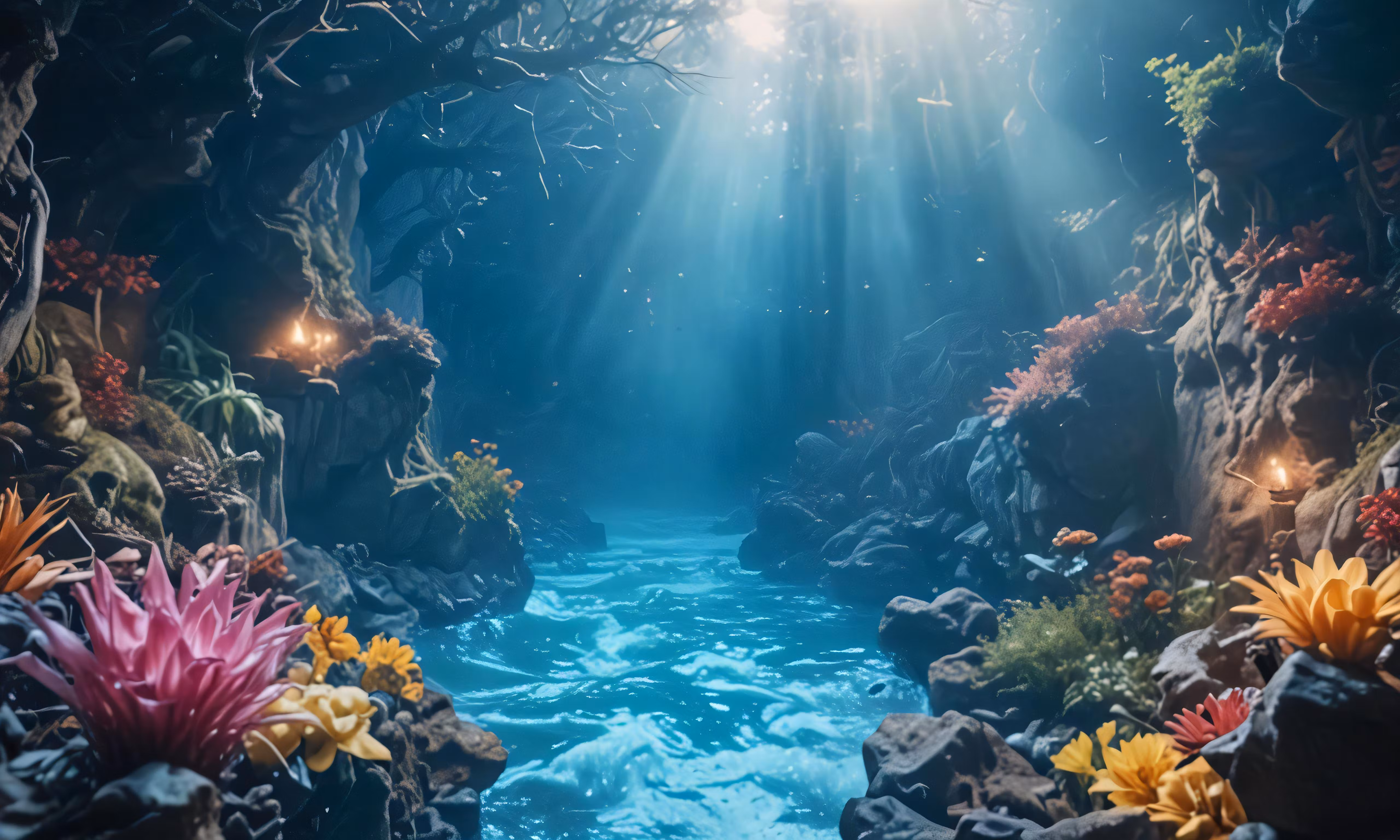 High resolution picture, free to use, an underwater scene with water and flowers
