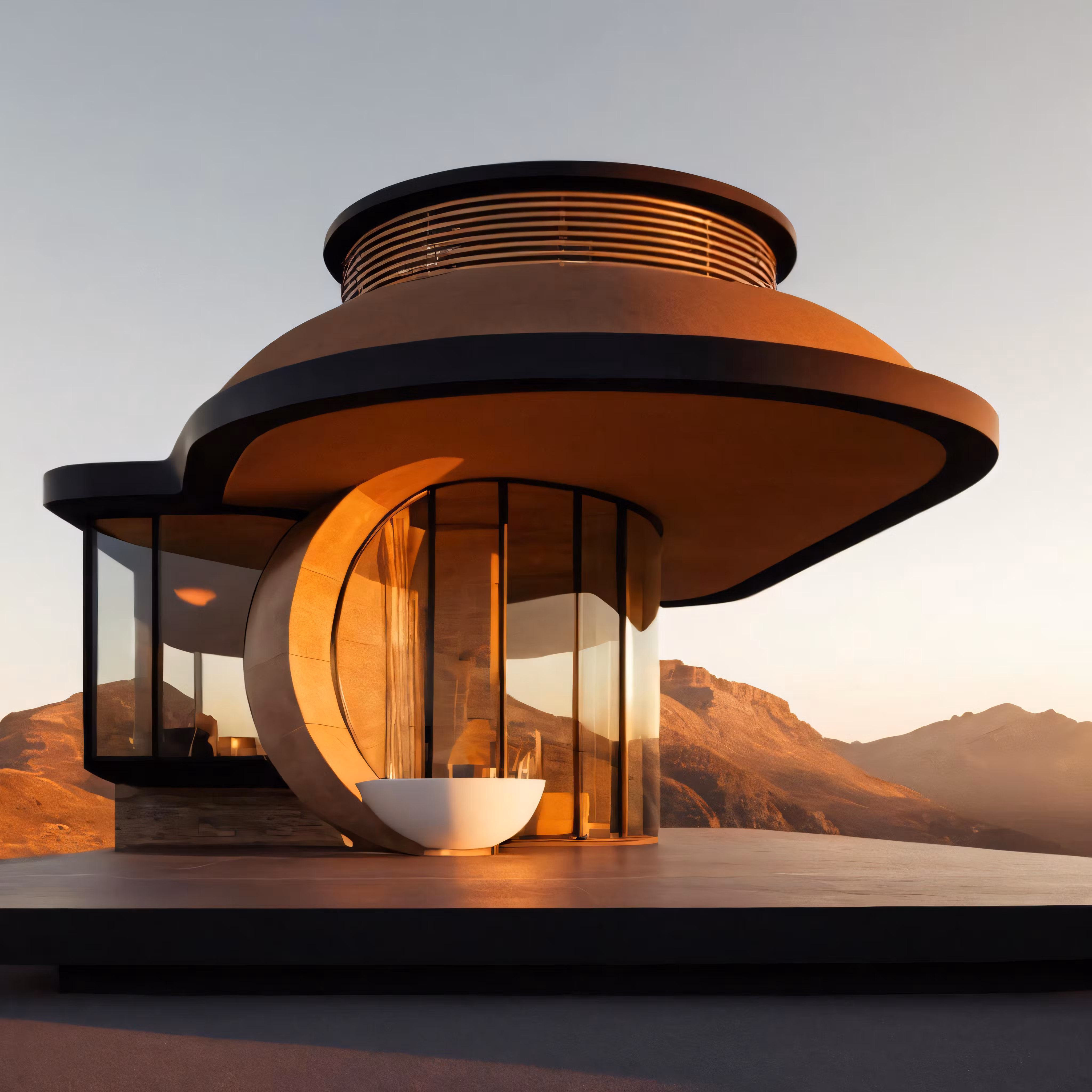 High resolution picture, free to use, an unusual looking house on top of a desert