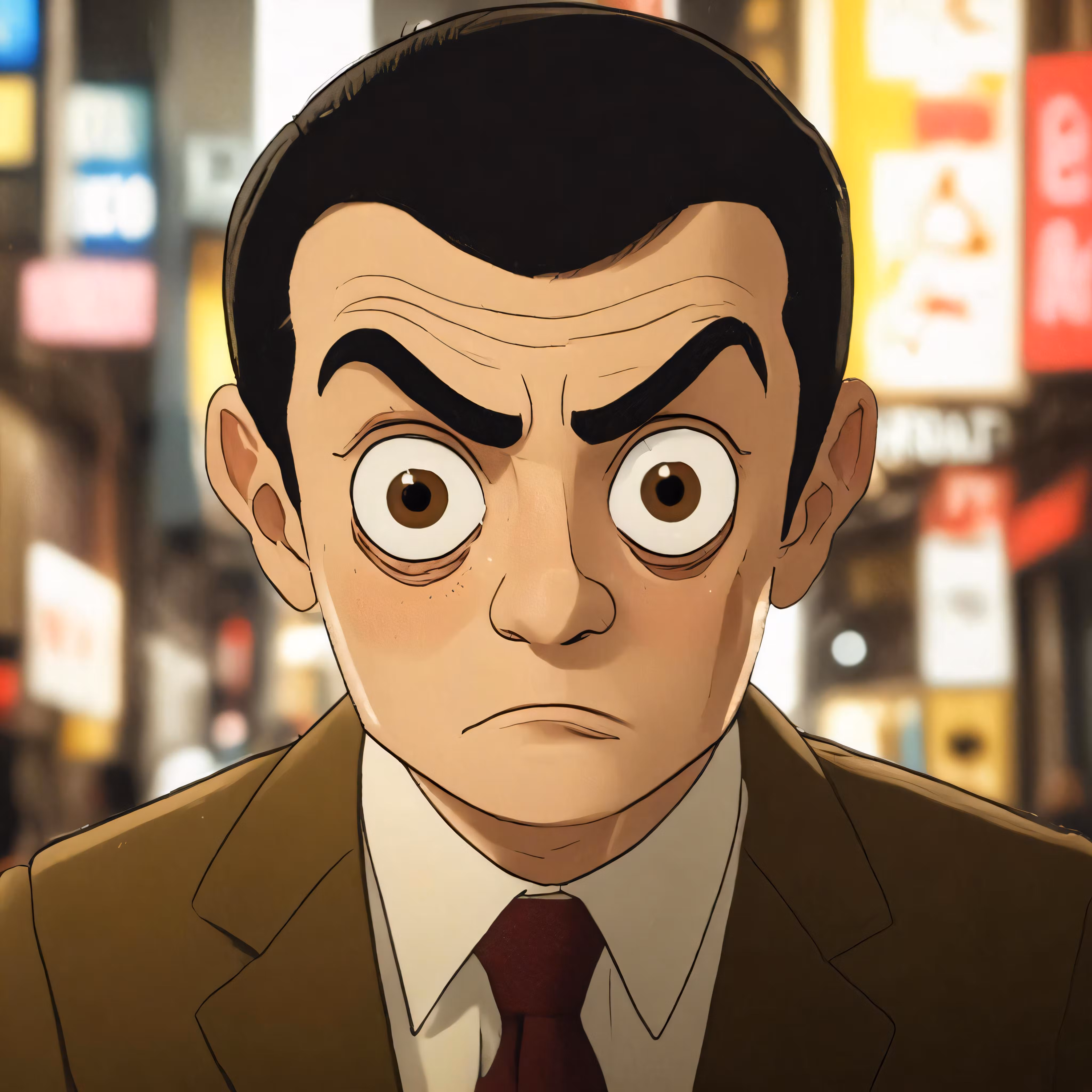 High resolution picture, free to use, anime cartoon man with a surprised look on his face