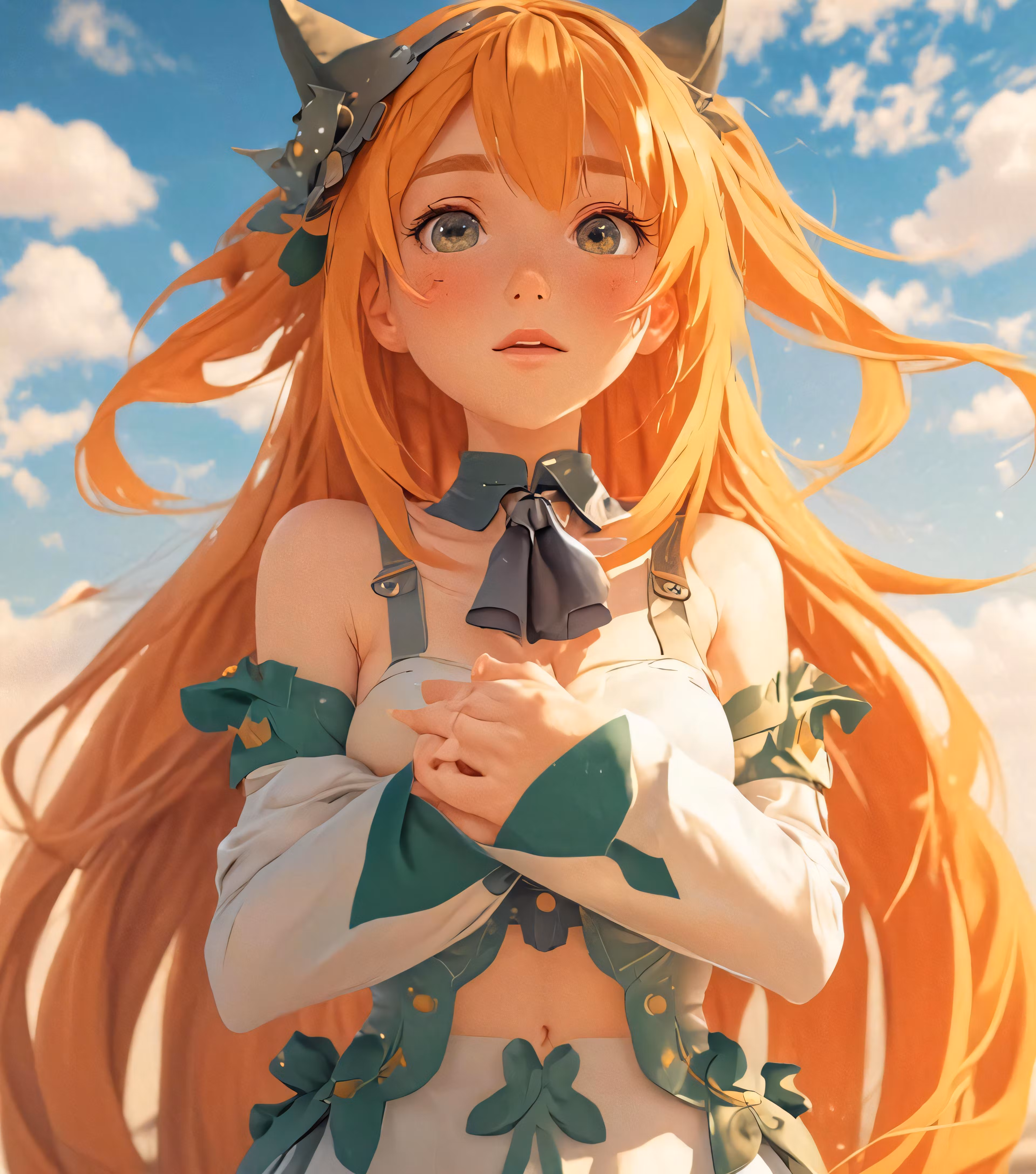 High resolution picture, free to use, anime character with long orange hair wearing green