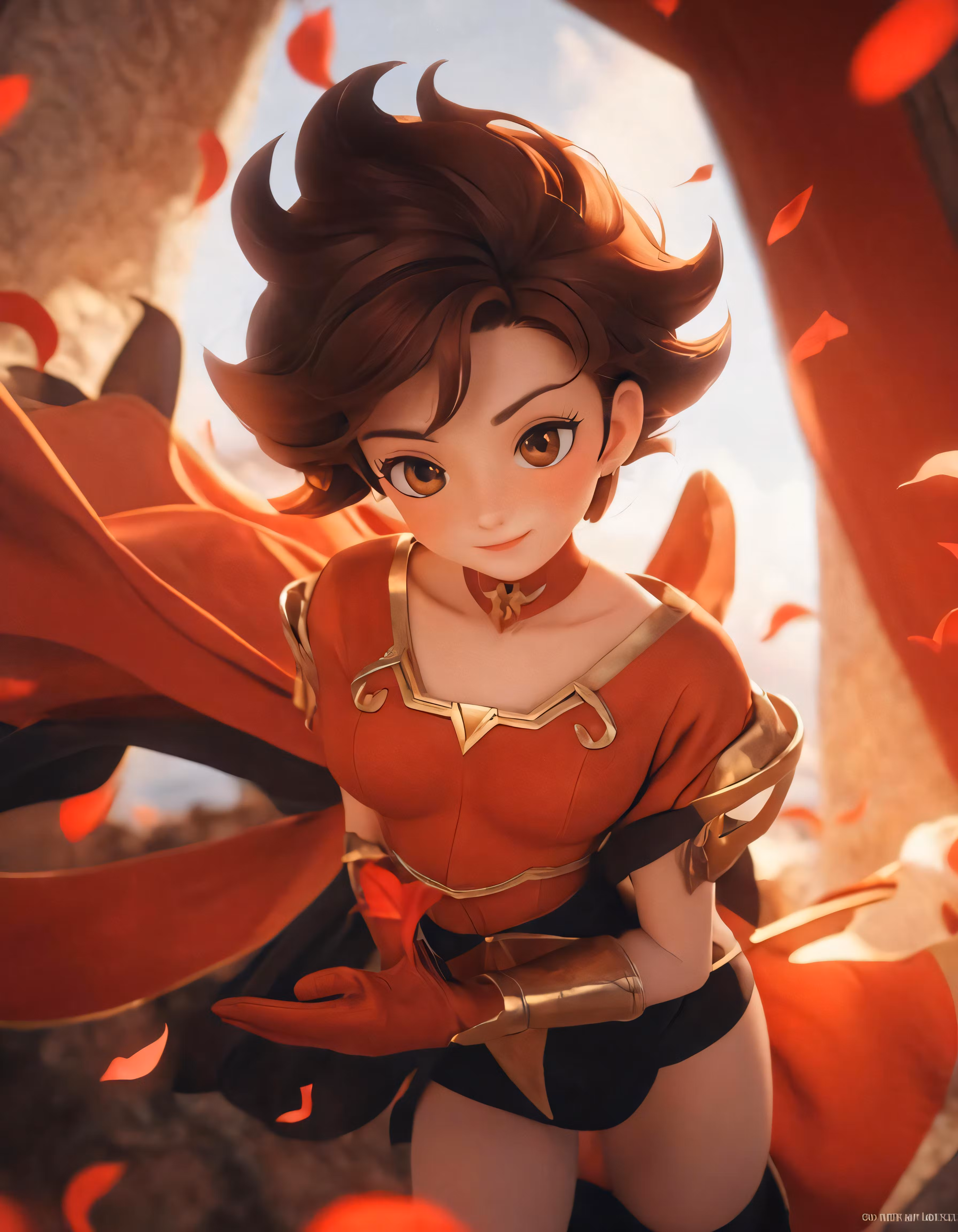 High resolution picture, free to use, anime girl in a red outfit standing on leaves