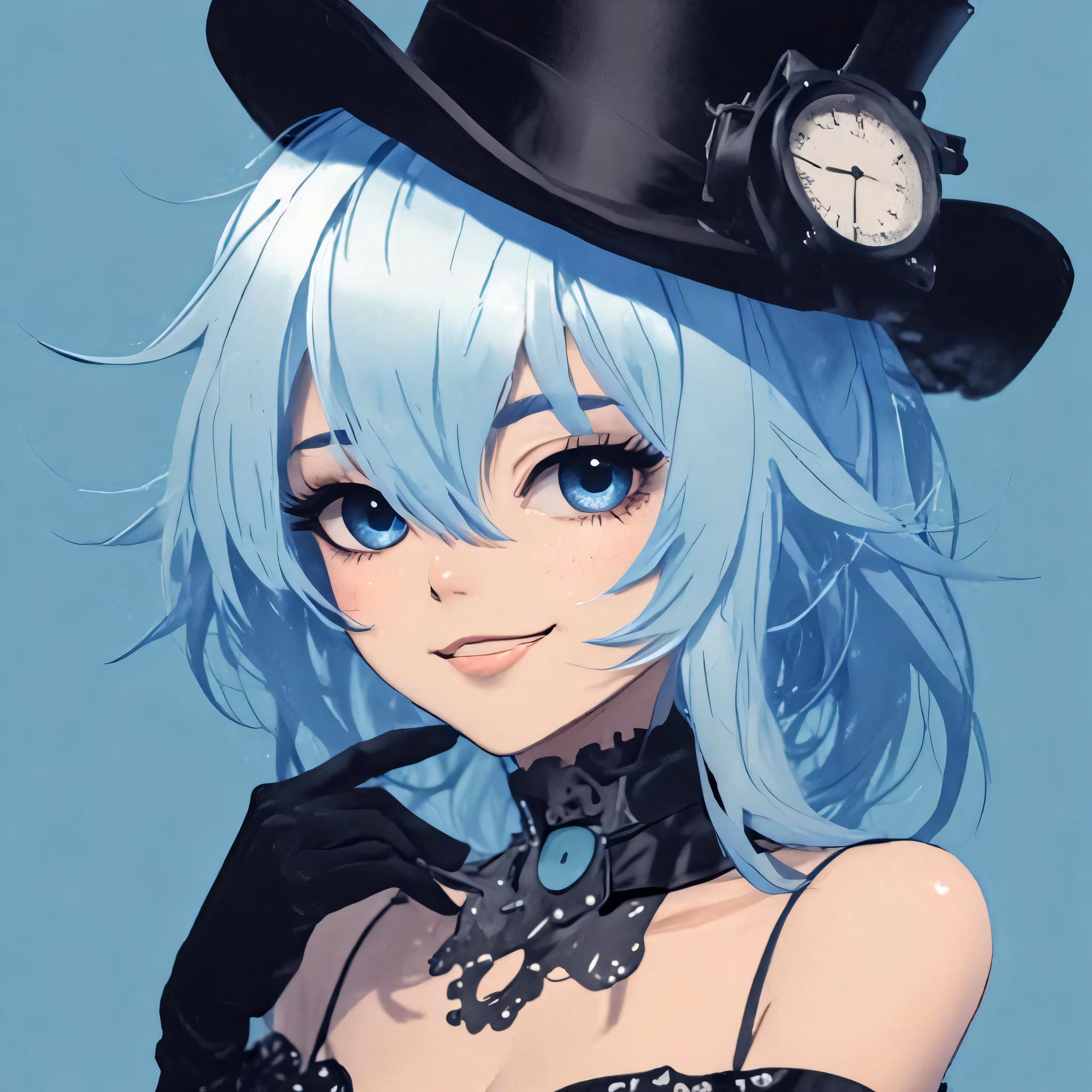 High resolution picture, free to use, anime girl in hat with clock and collared