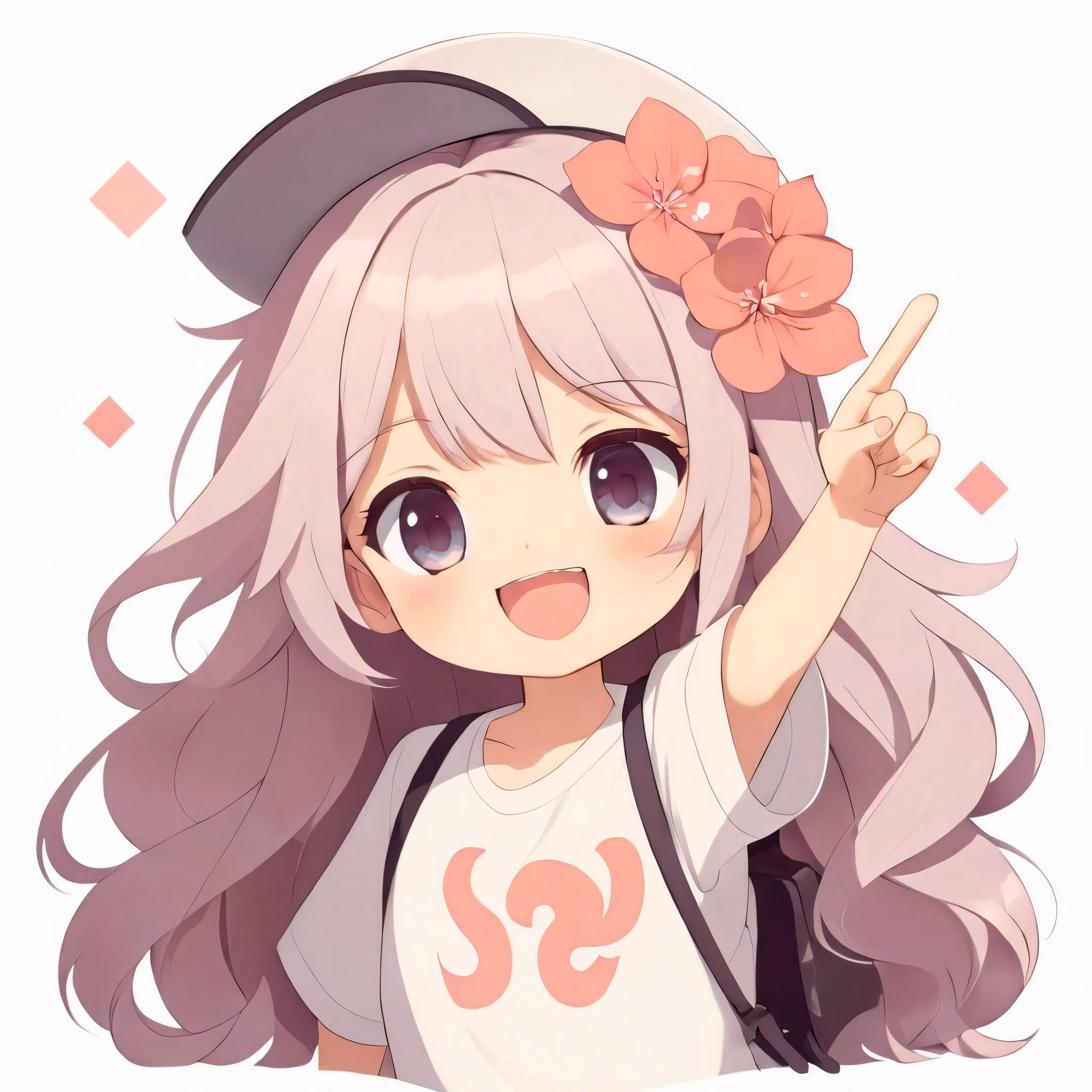 High resolution picture, free to use, anime girl with pink hair and wearing a pink flower in her hair