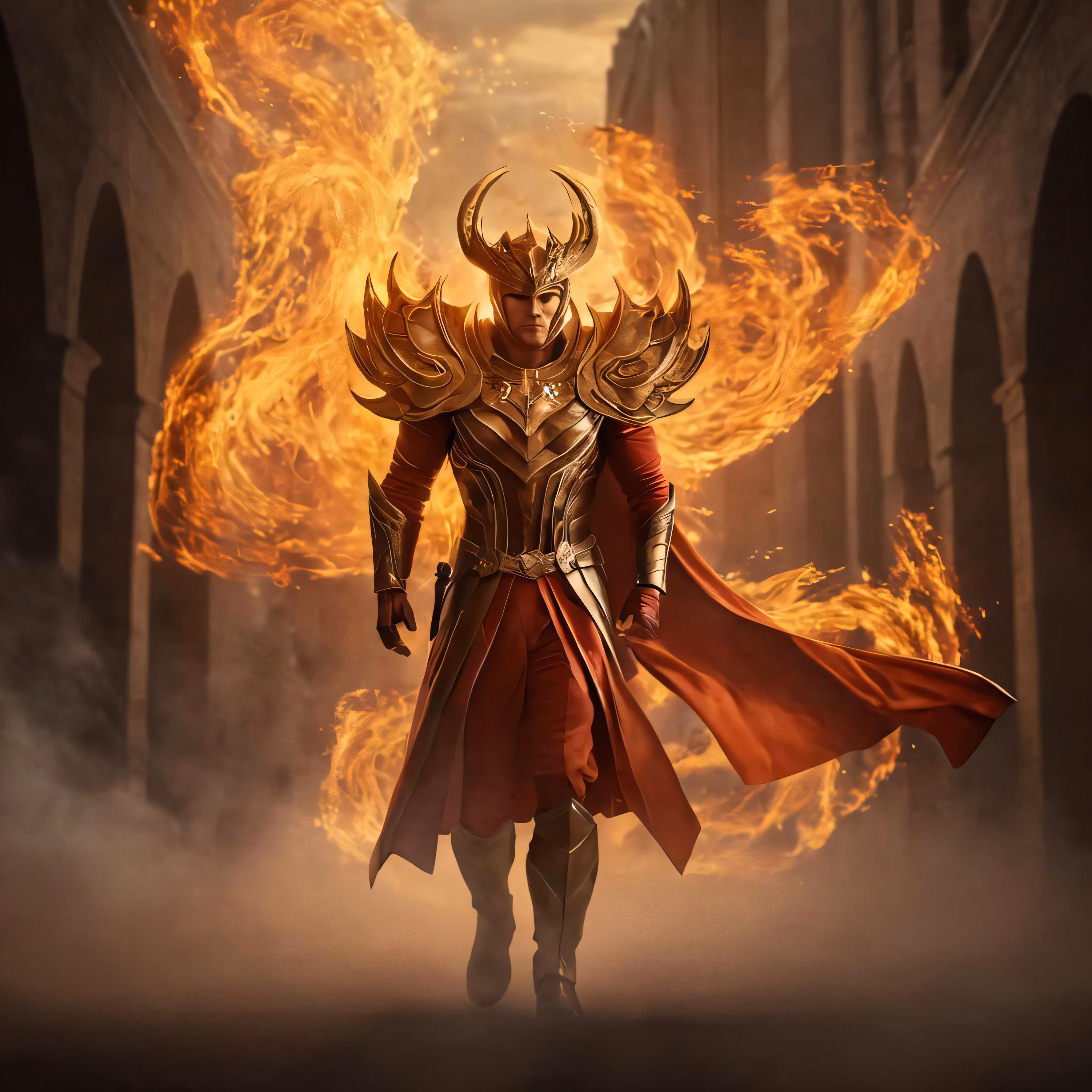 High resolution picture, free to use, anubil holding torches with fire behind it