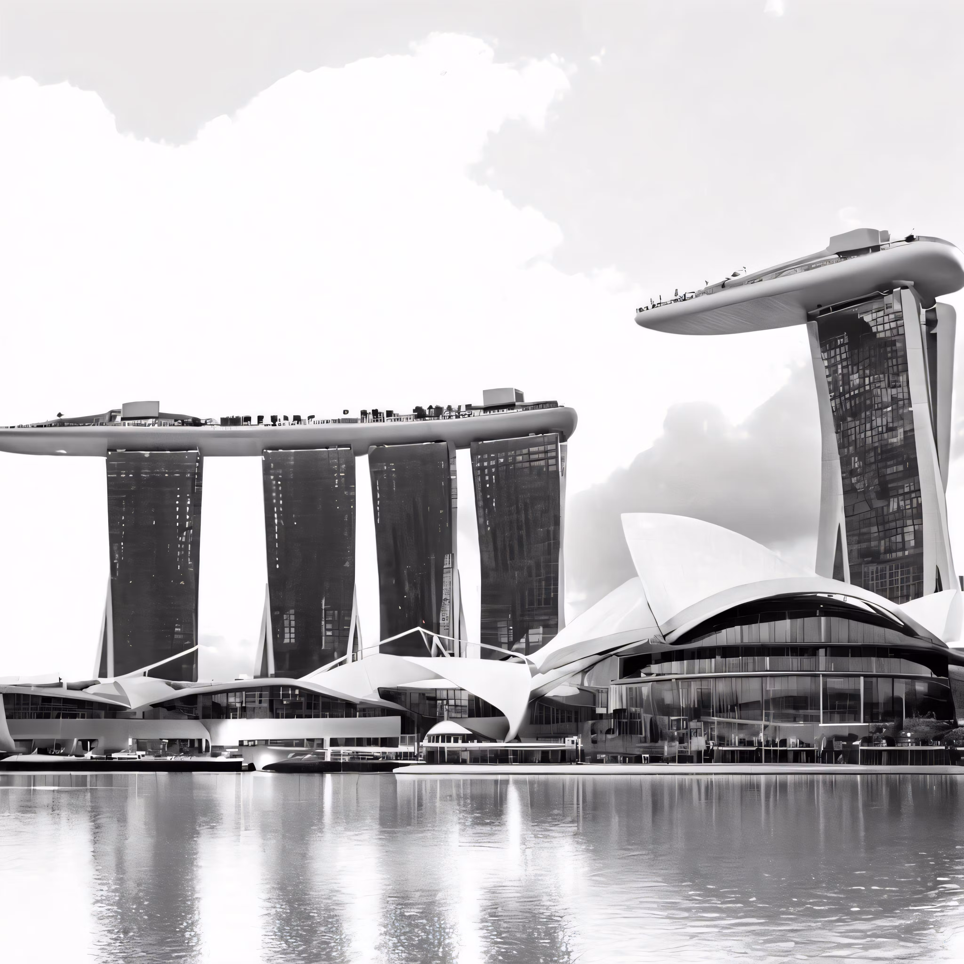 High resolution picture, free to use, architectural buildings sit next to the water on a sunny day