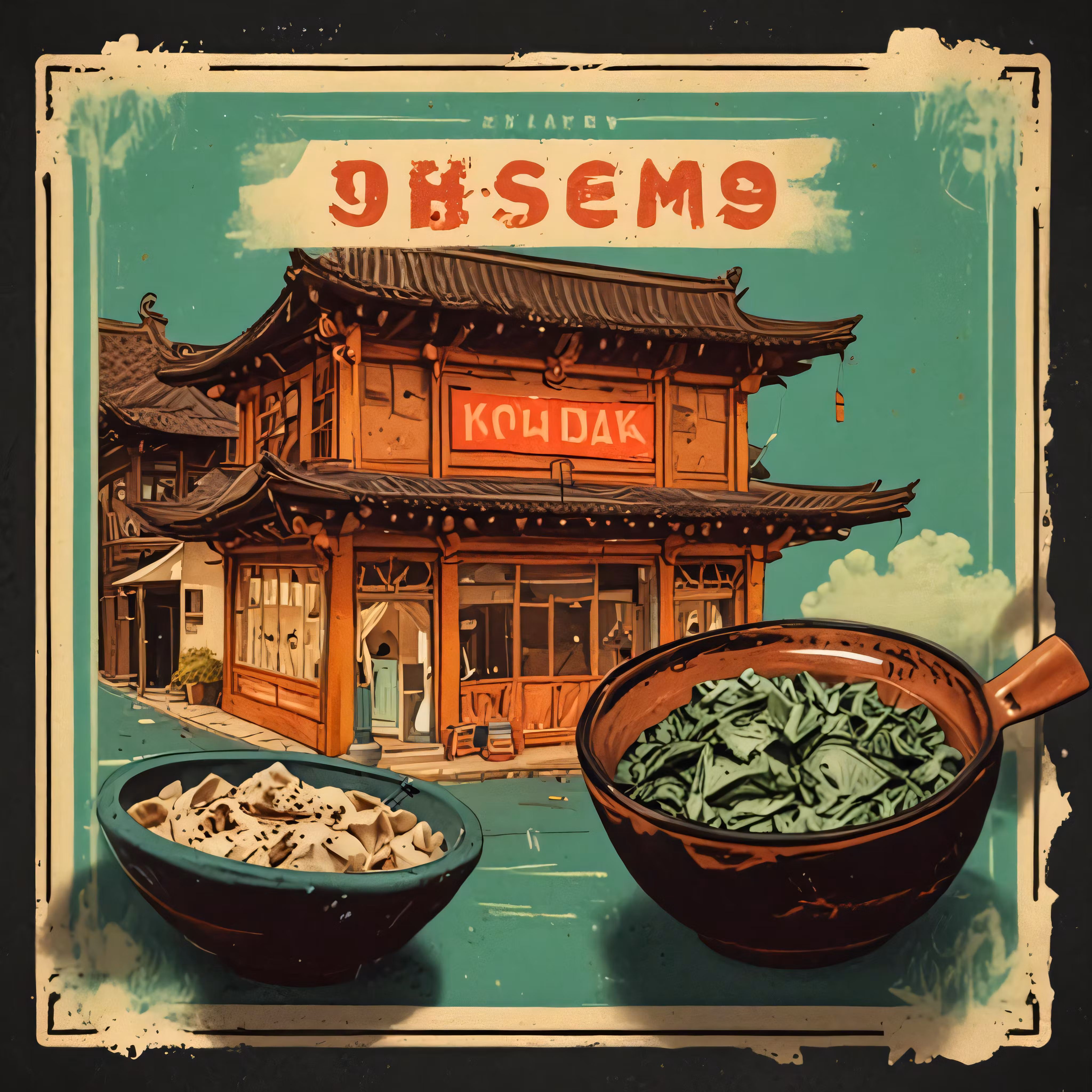 High resolution picture, free to use, asian restaurant on a street in front of other buildings