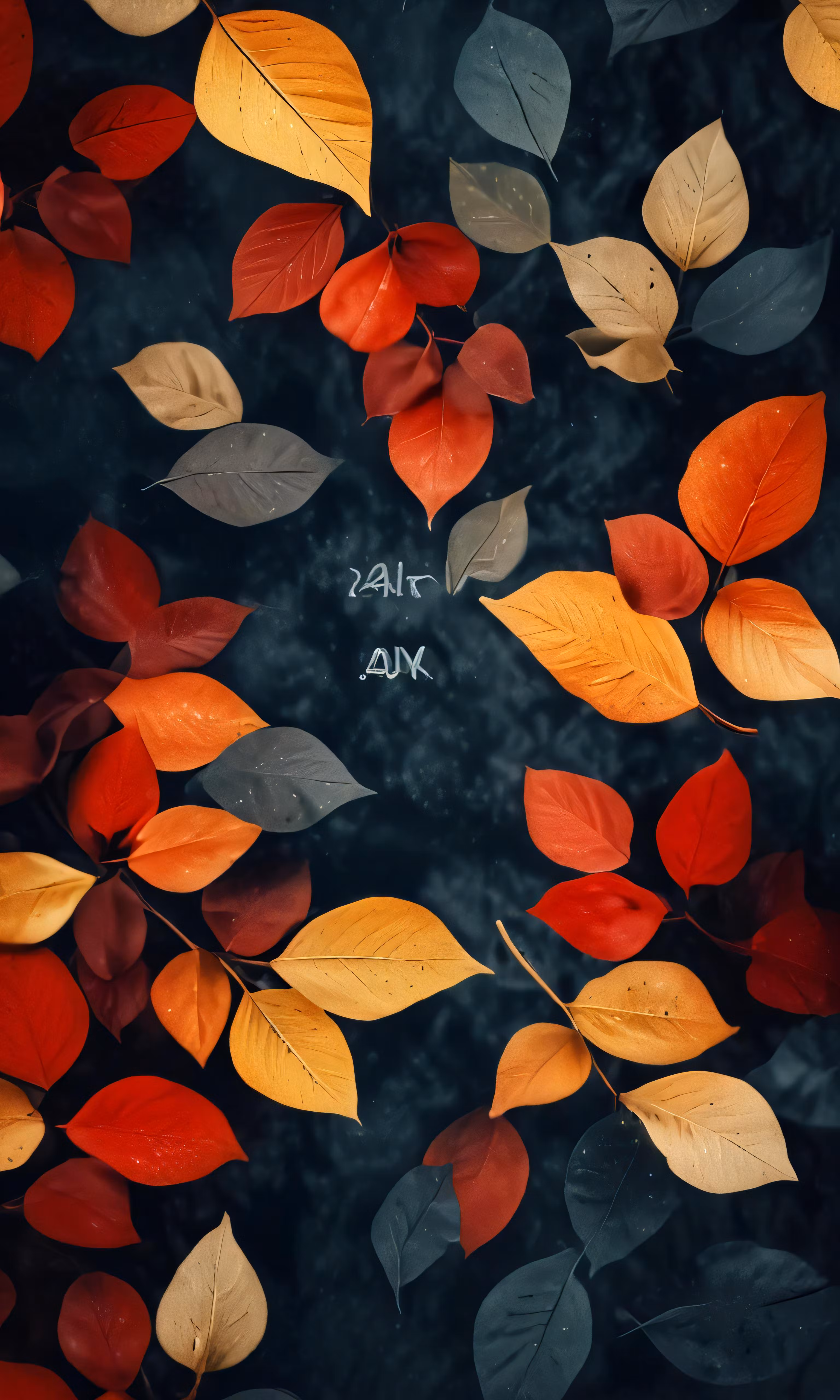 High resolution picture, free to use, autumn leaves flying through the air with a black background
