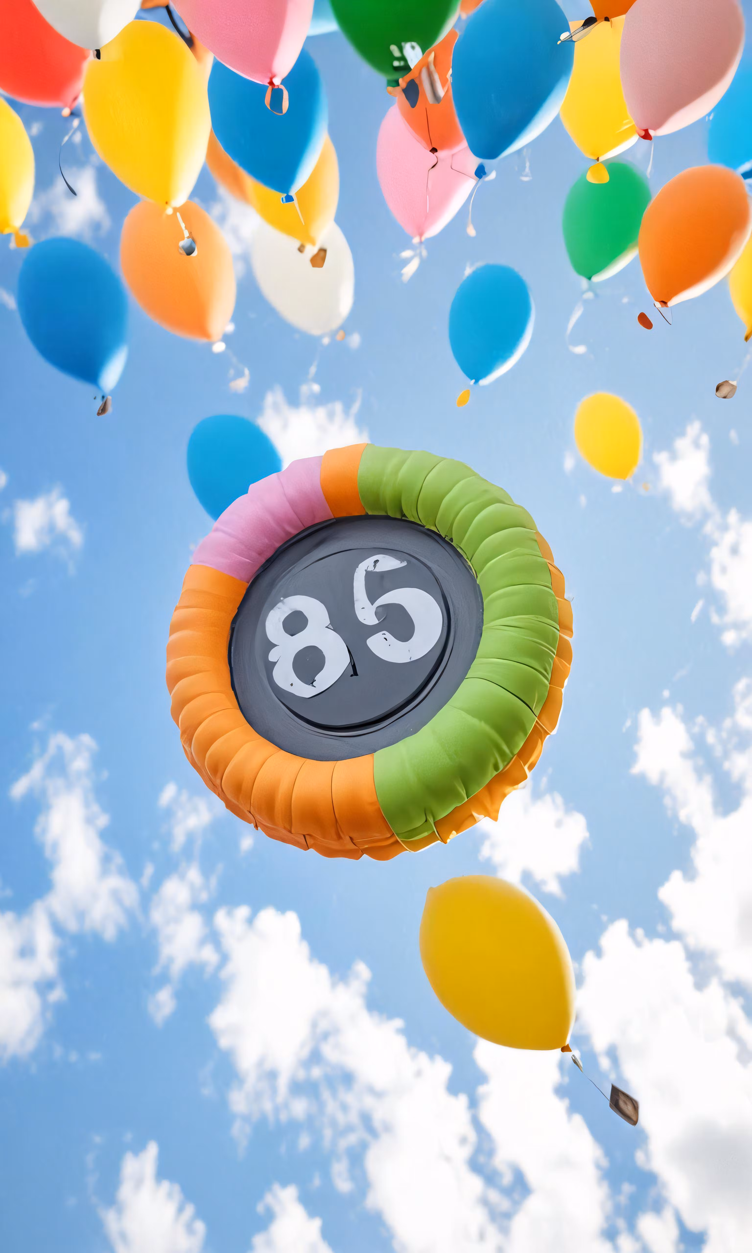 High resolution picture, free to use, balloons flying in the air with a sign that reads eighty