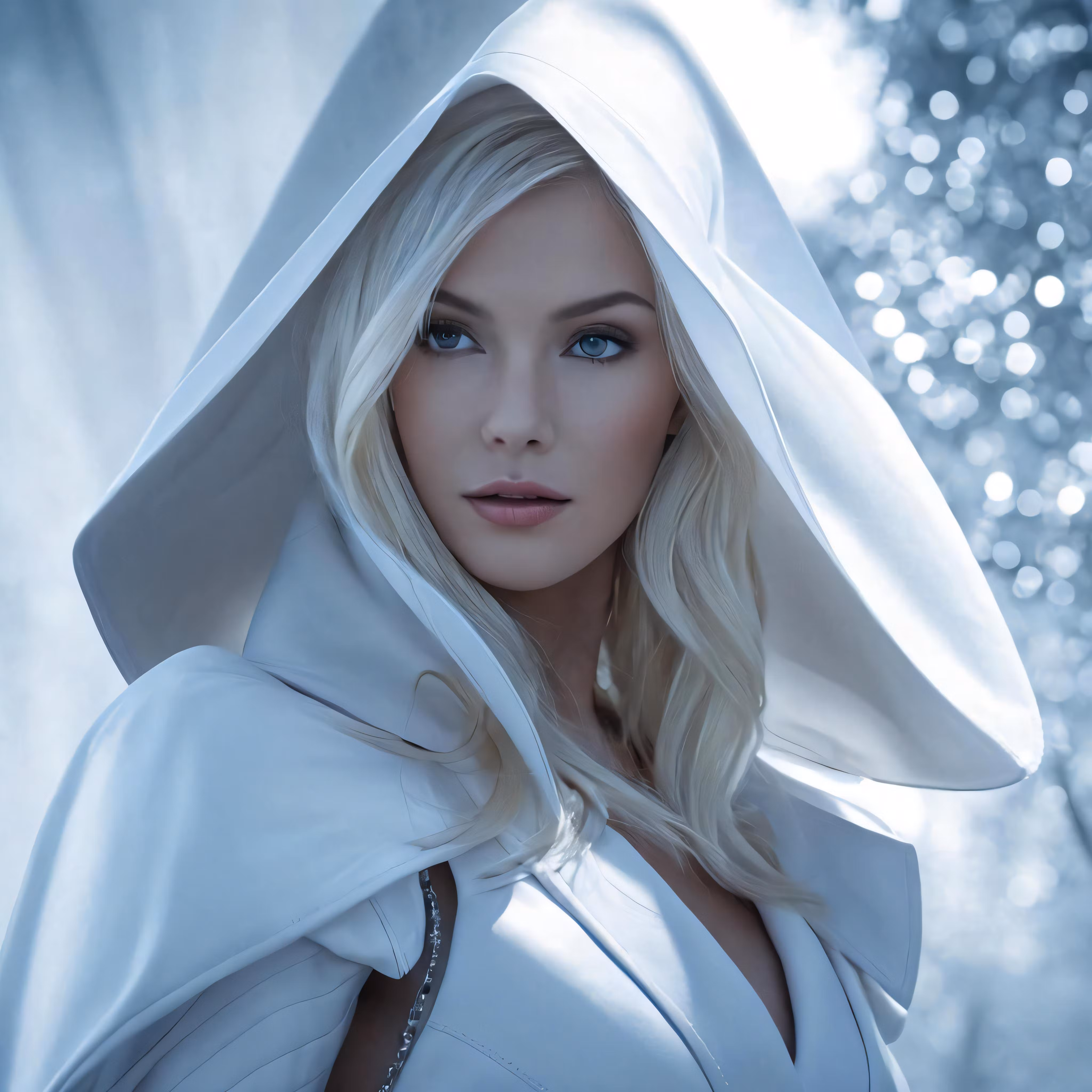 High resolution picture, free to use, beautiful blonde woman wearing a white cloak and jewels