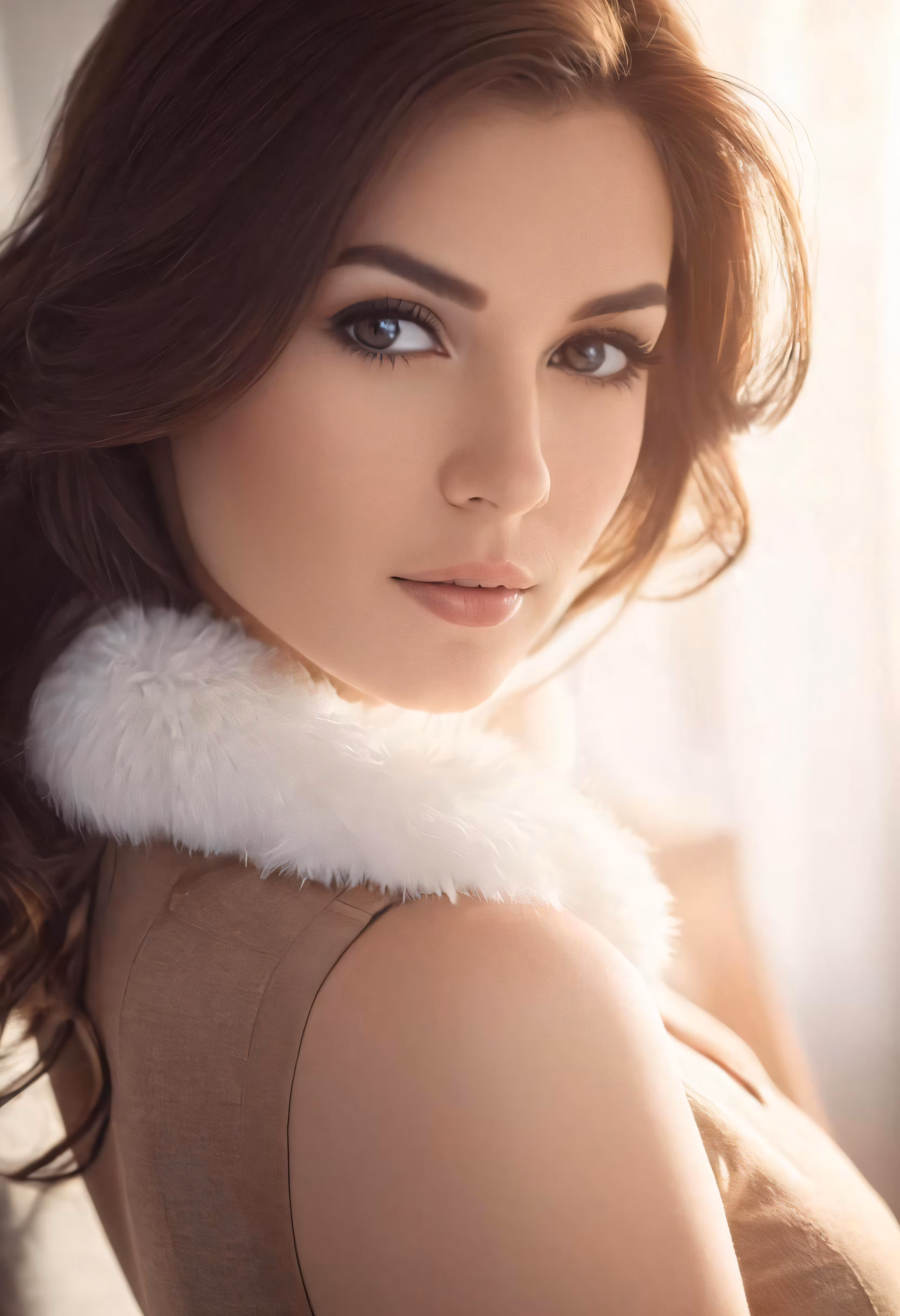 High resolution picture, free to use, beautiful woman with brown eyes with white collar
