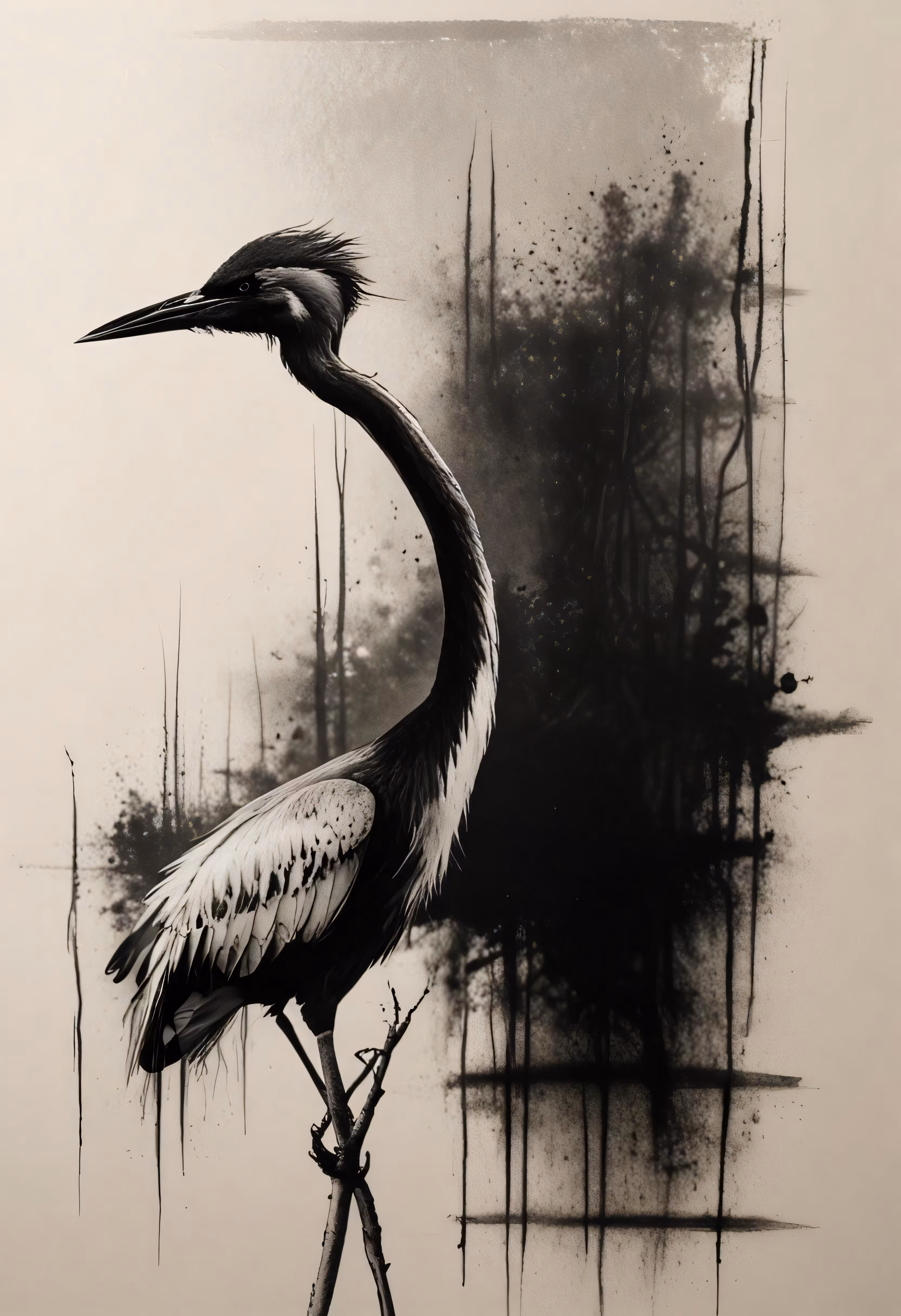 High resolution picture, free to use, bird standing on small branch with very long neck