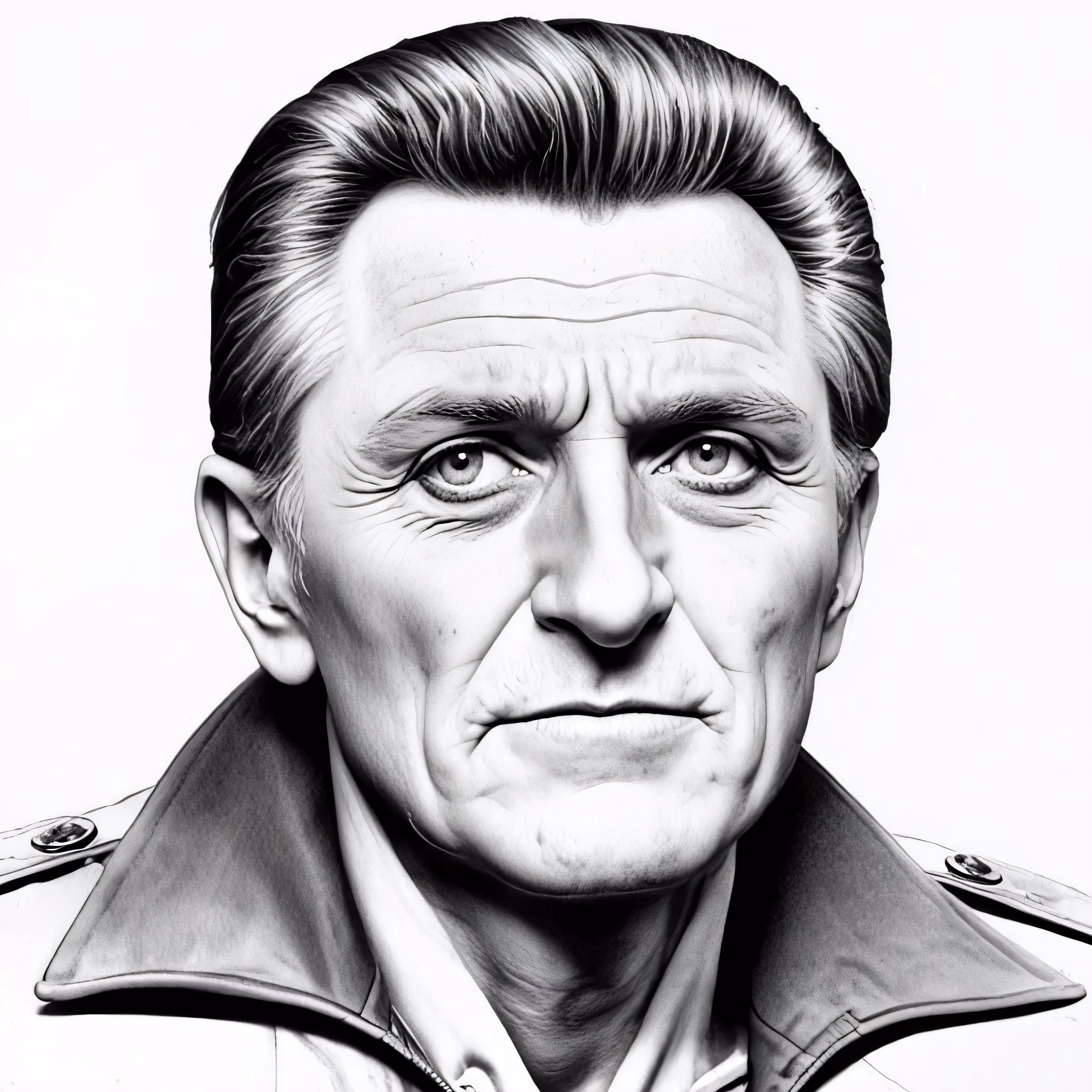 High resolution picture, free to use, black and white drawing of a man in military uniform