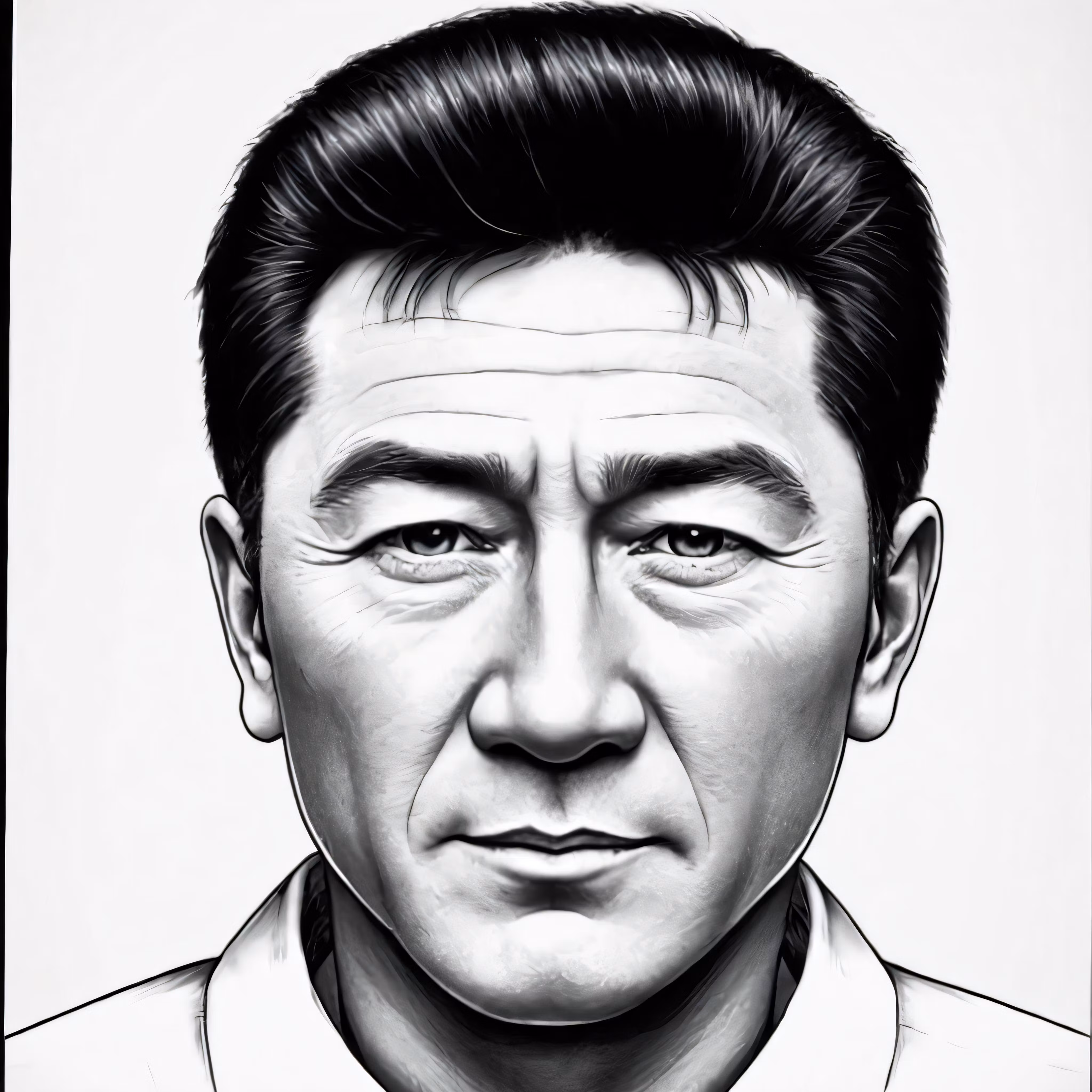 High resolution picture, free to use, black and white drawing of a man with a bald head