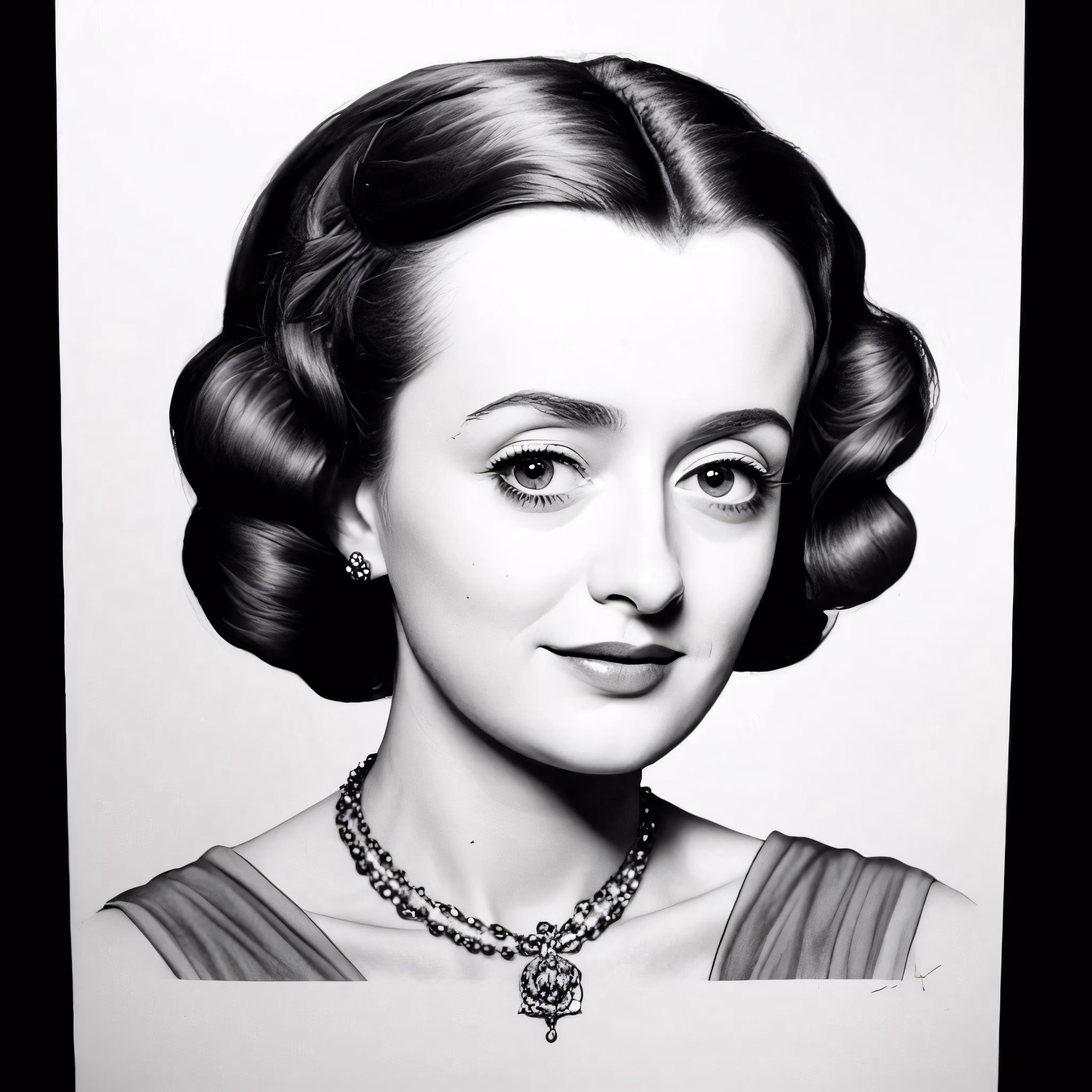 High resolution picture, free to use, black and white drawing of a woman wearing a necklace