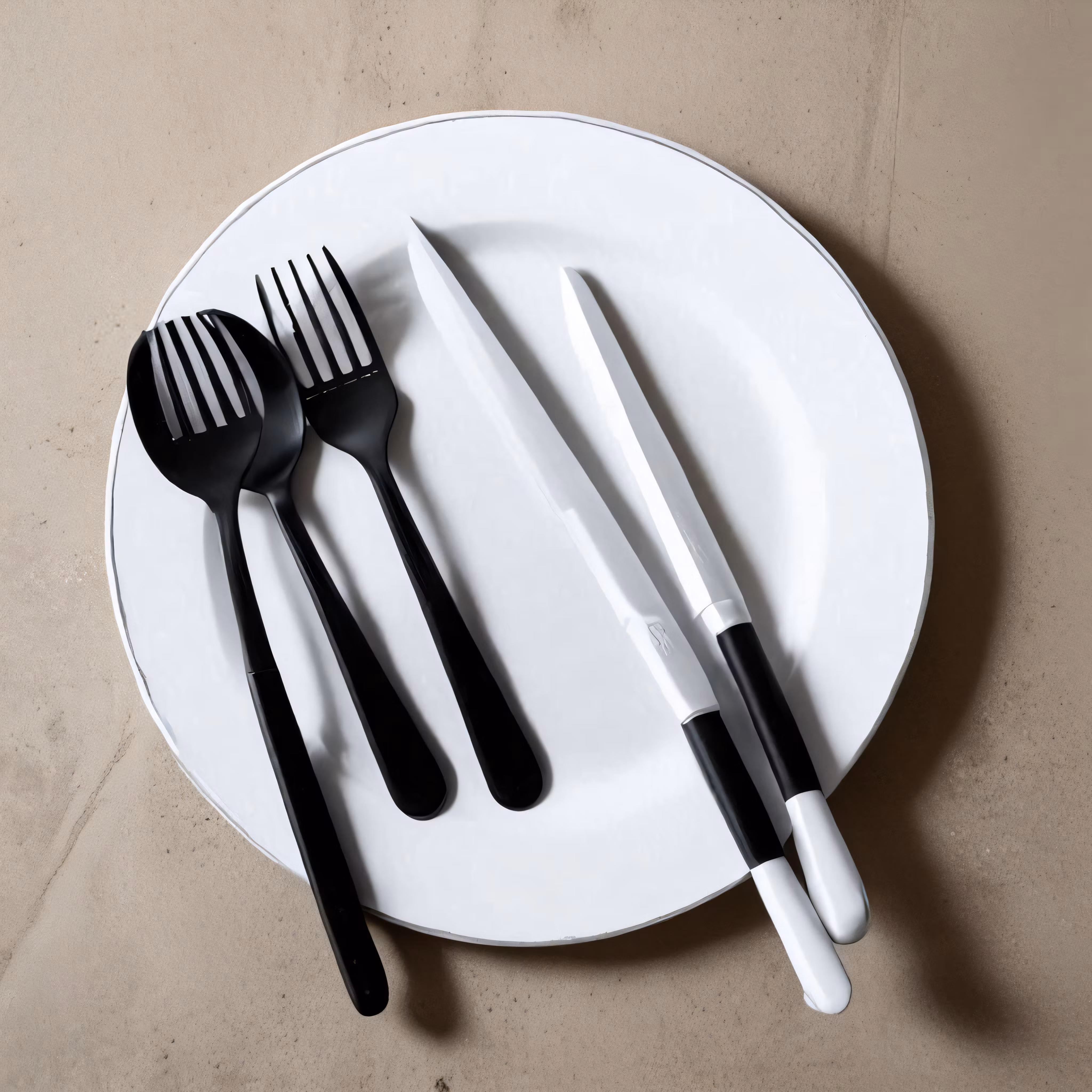 High resolution picture, free to use, black and white fork, spoon and knife set