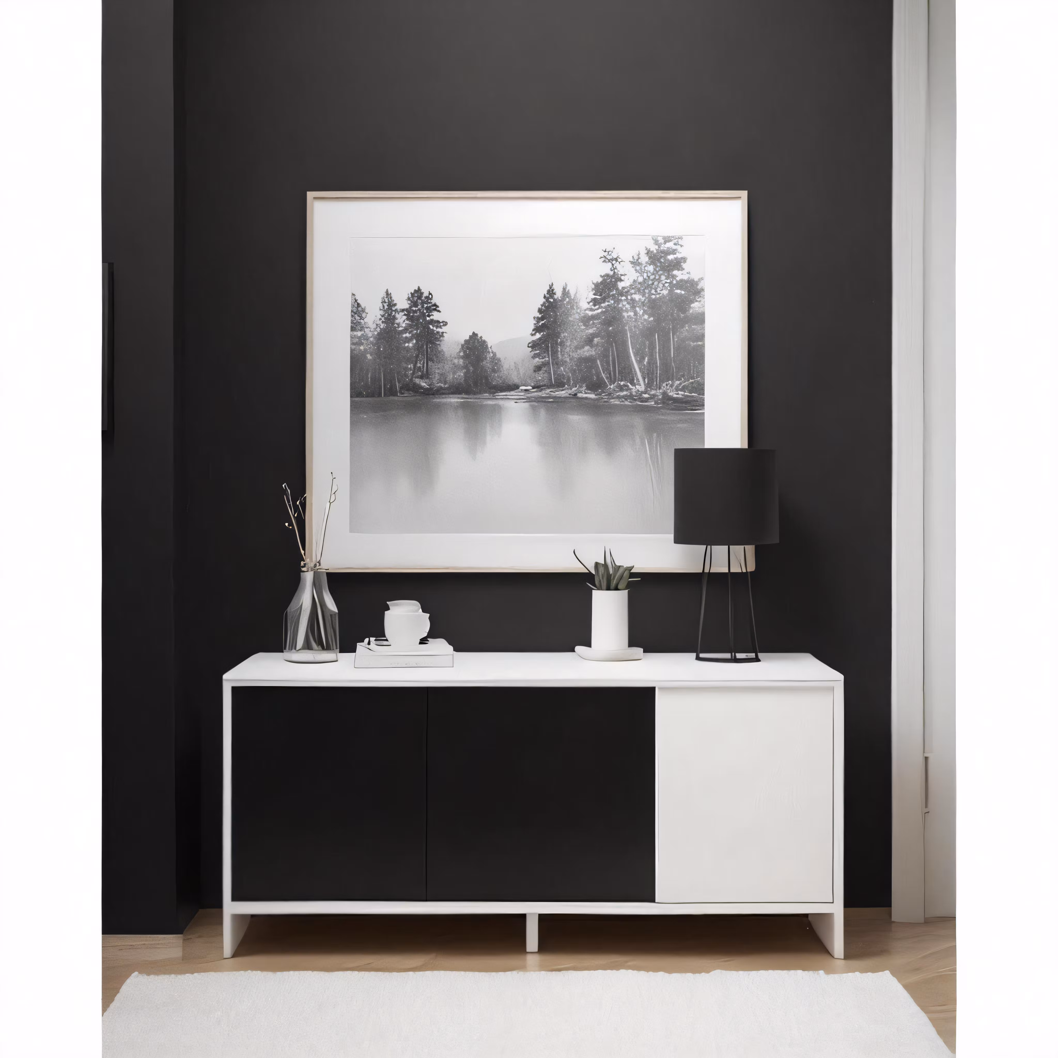 High resolution picture, free to use, black and white modern tv stand with white and black accents