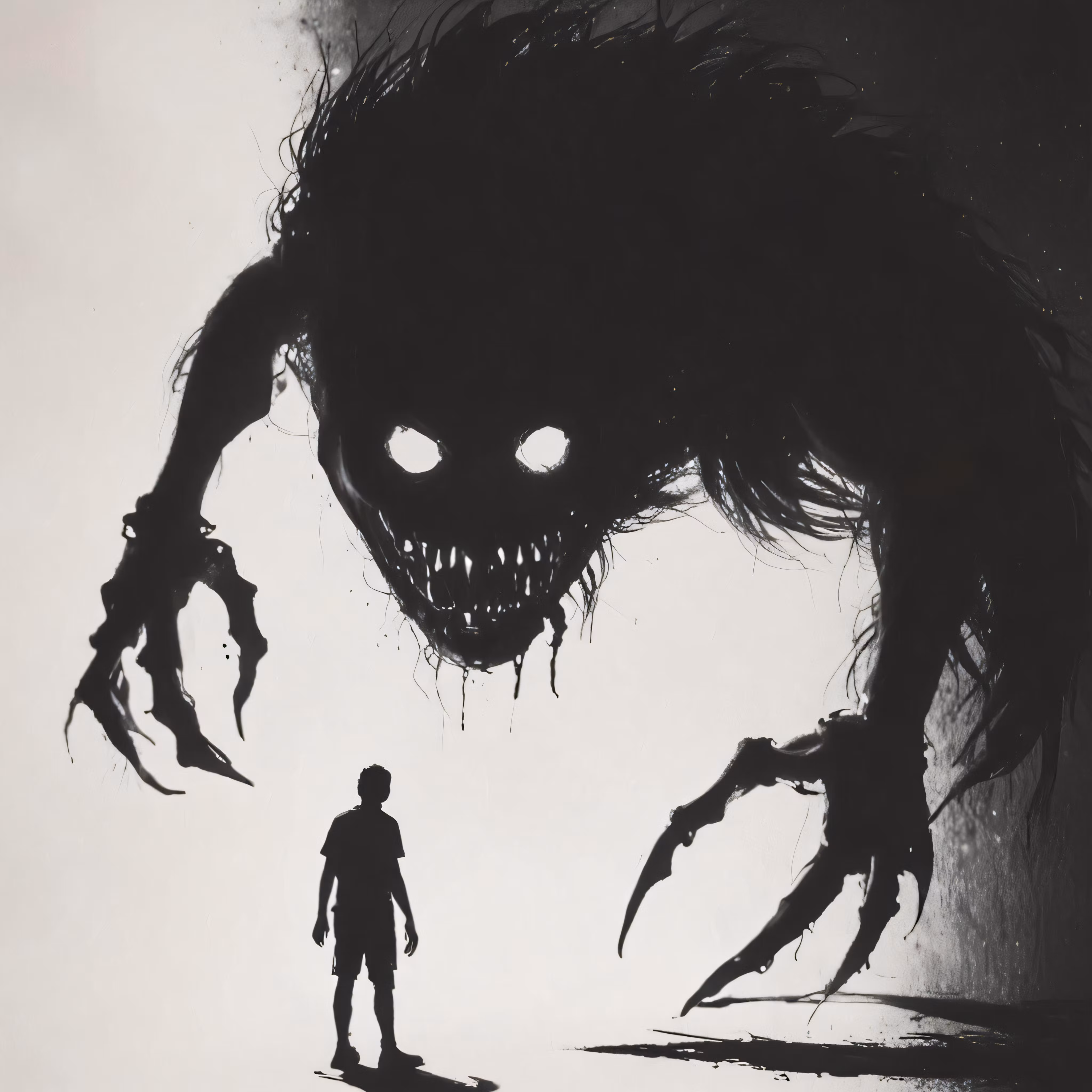 High resolution picture, free to use, black and white painting of a man with large eyes