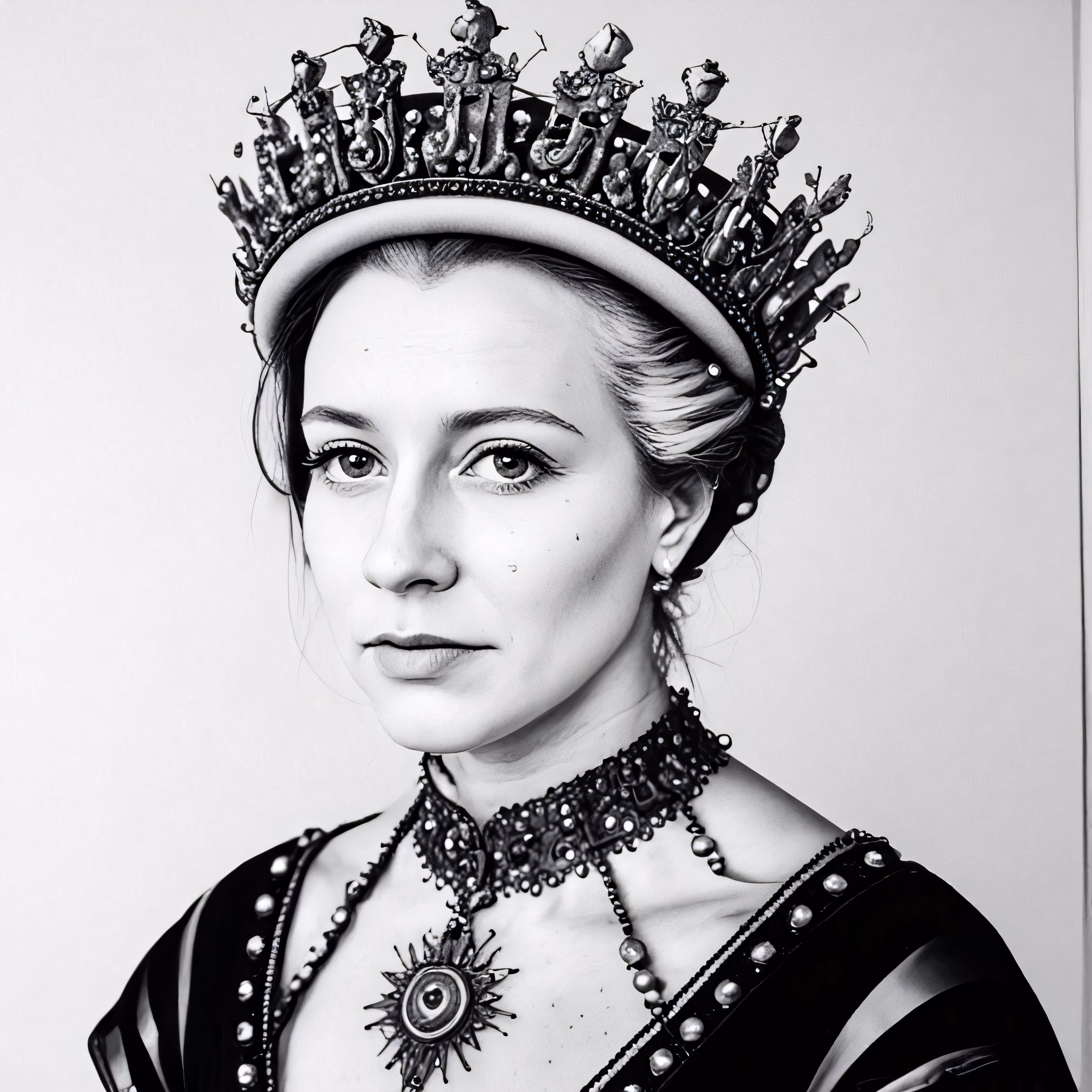 High resolution picture, free to use, black and white pencil drawing of a lady wearing a tiara