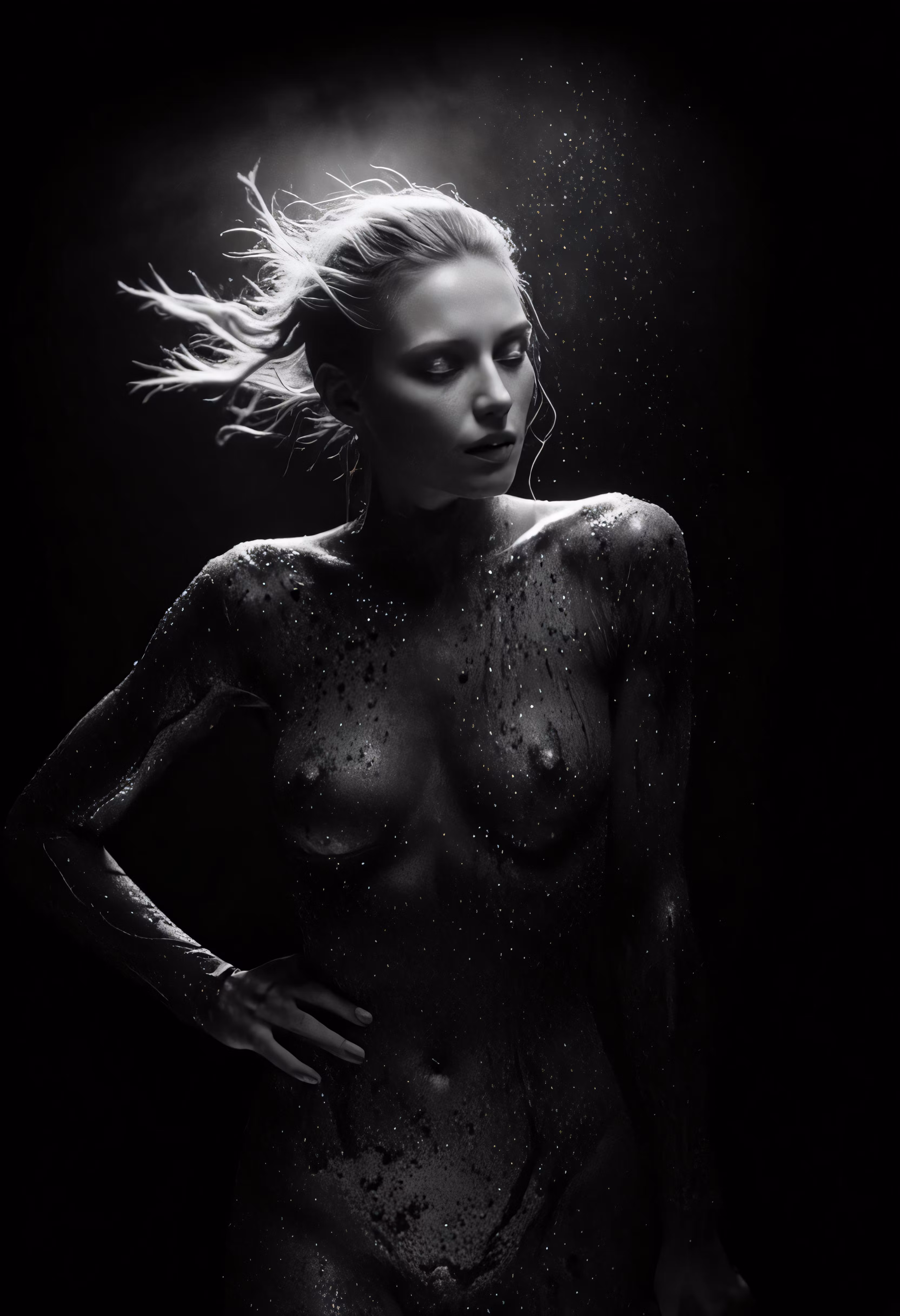 High resolution picture, free to use, black and white photo of a naked woman