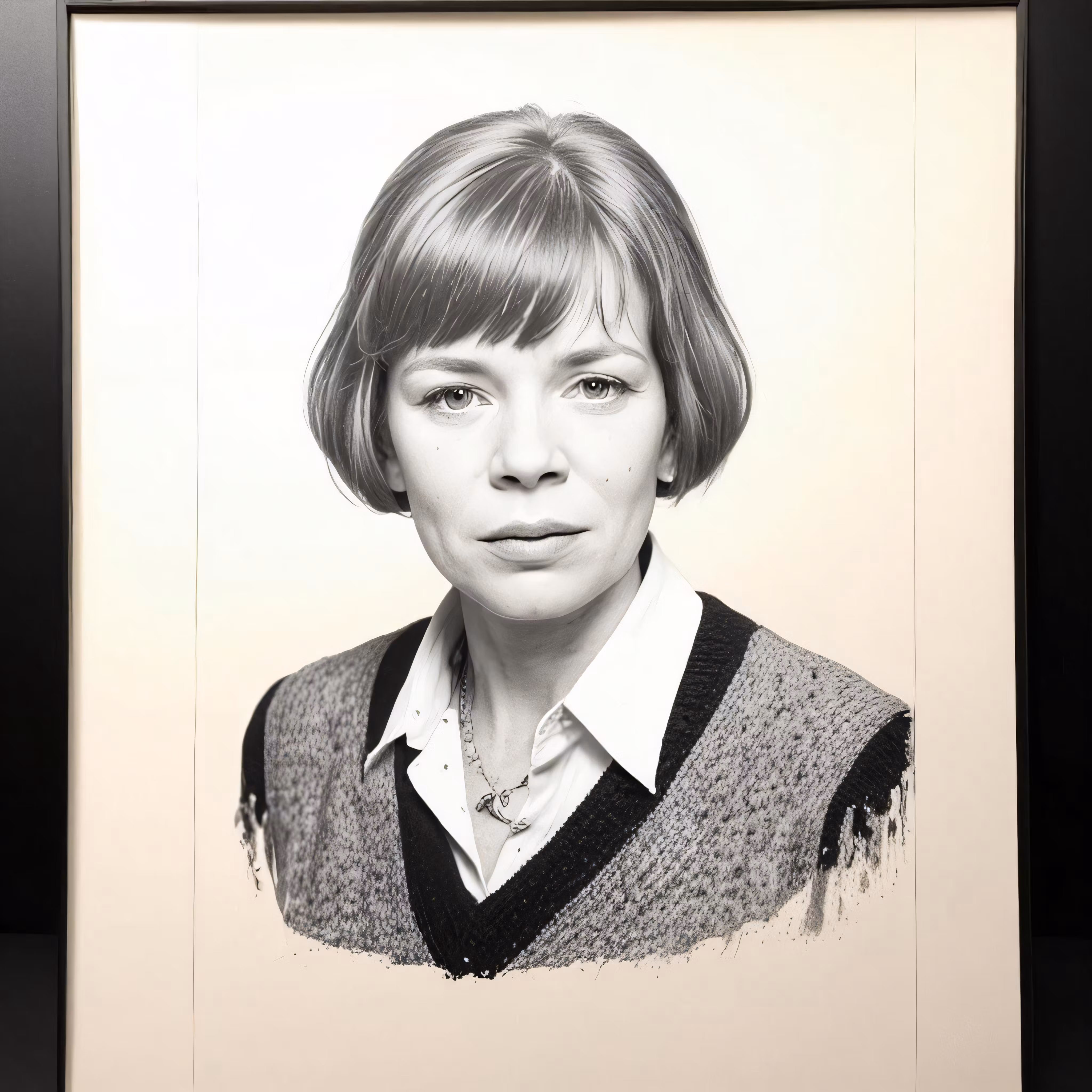 High resolution picture, free to use, black and white photo of woman in vest with bangs