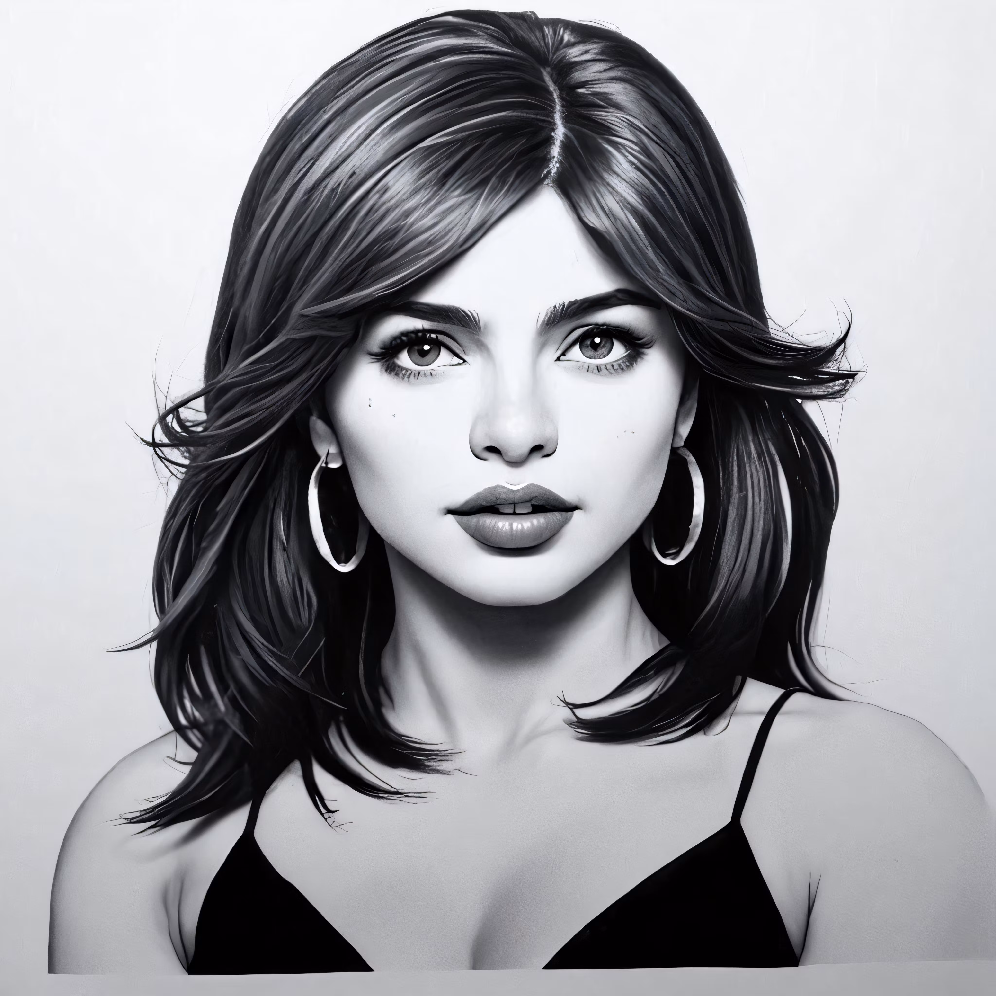 High resolution picture, free to use, black and white photograph of a beautiful woman with her hair pinned up in a low angled angle
