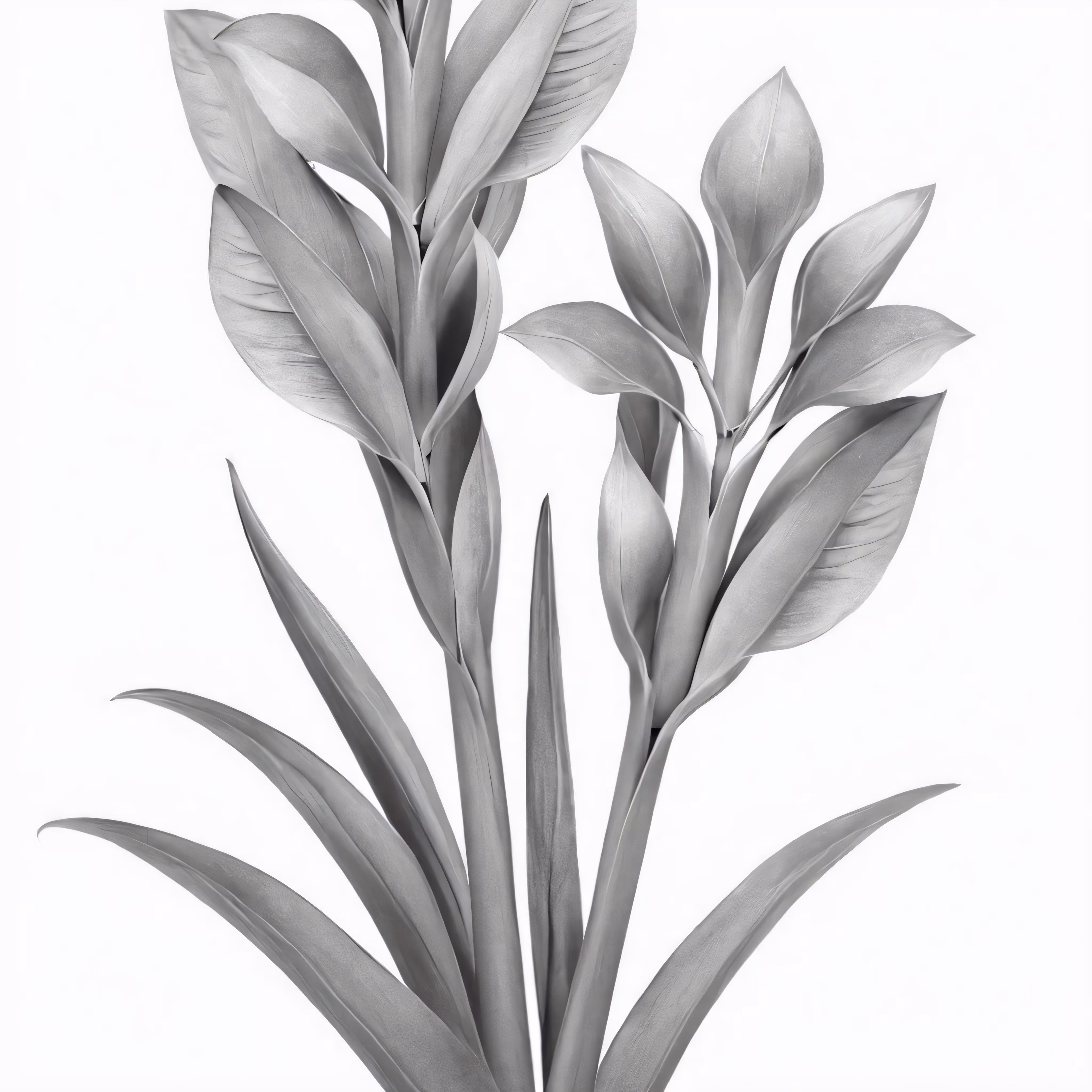 High resolution picture, free to use, black and white photograph of a plant on a white background