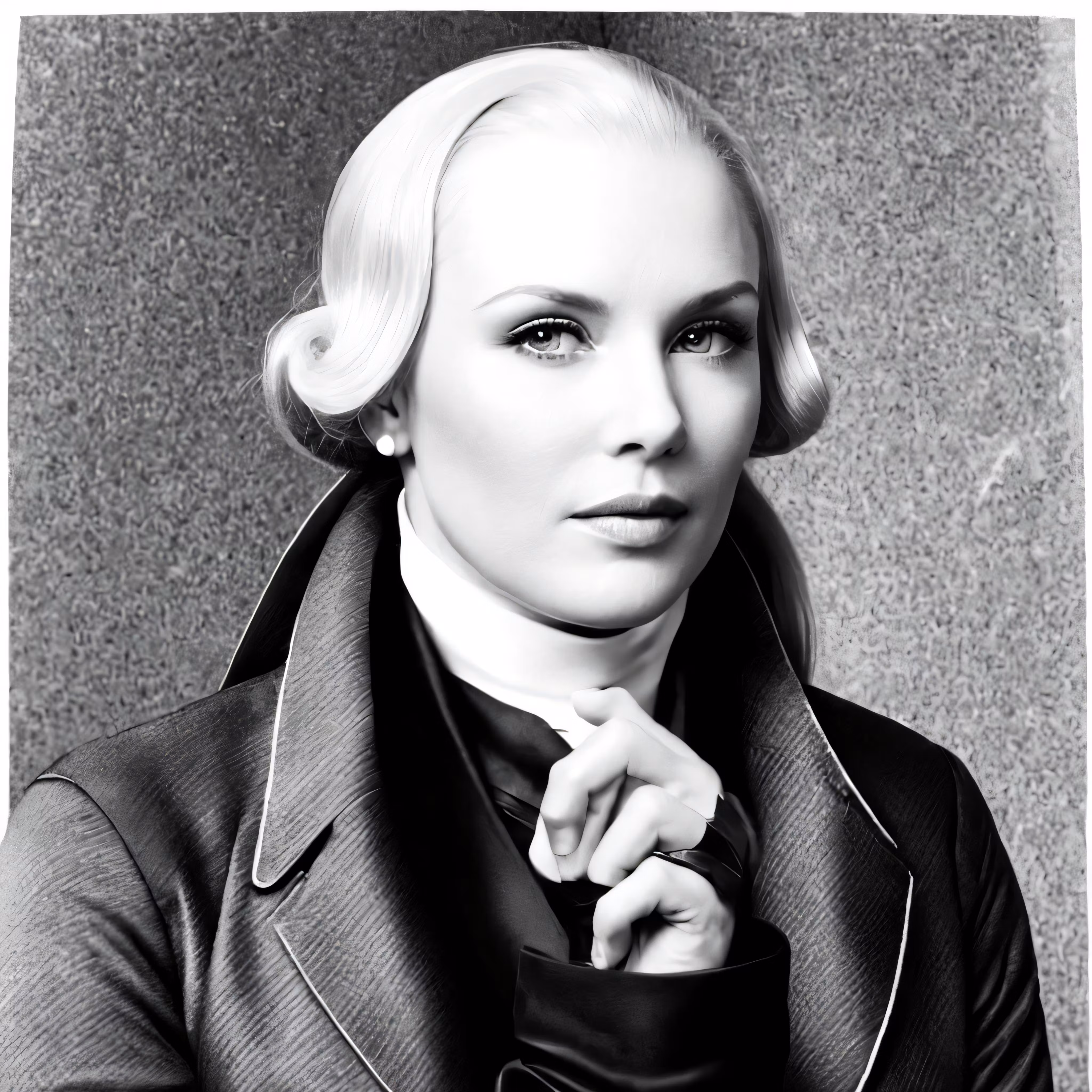 High resolution picture, free to use, black and white photograph of a woman wearing a suit