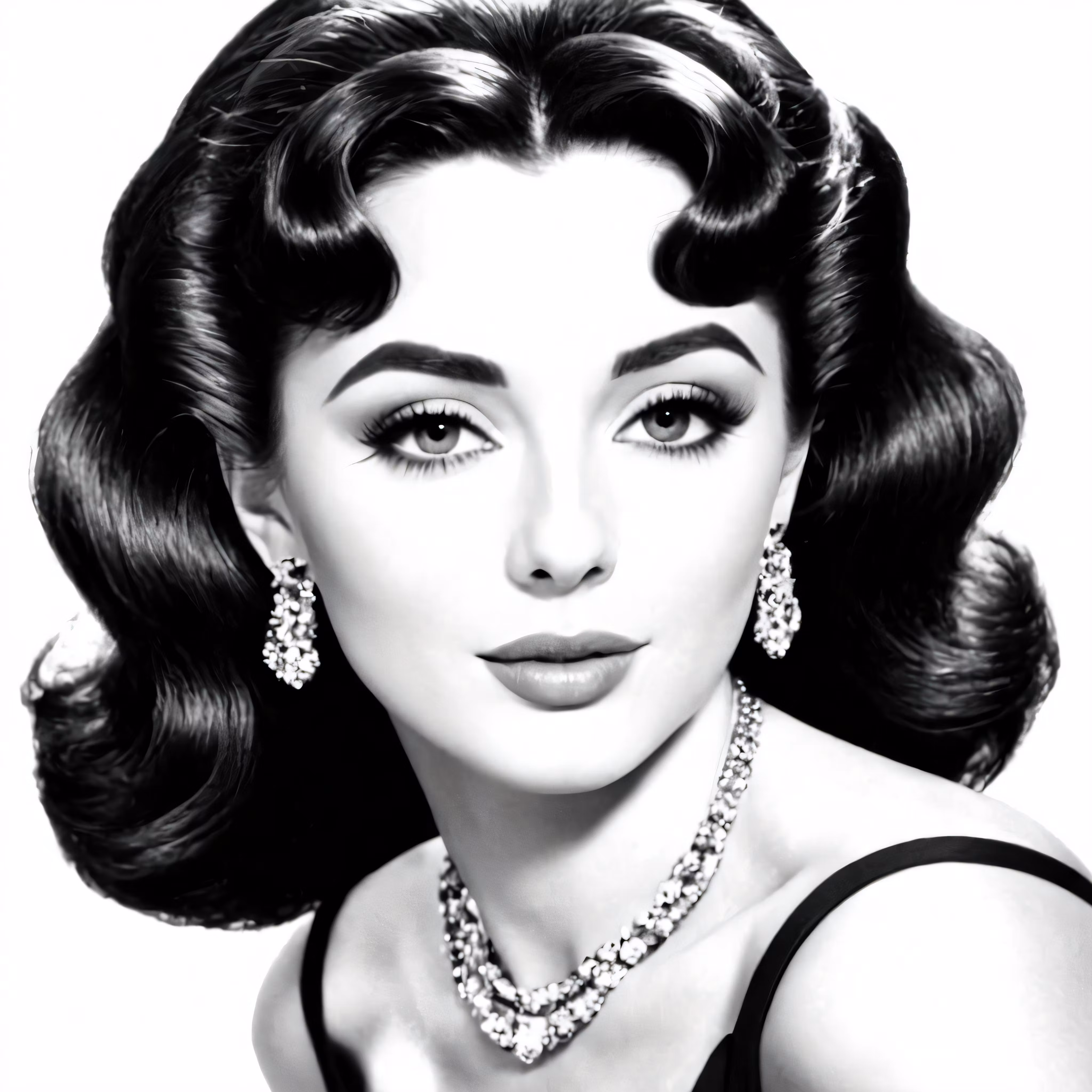High resolution picture, free to use, black and white photograph of a woman wearing jewelry