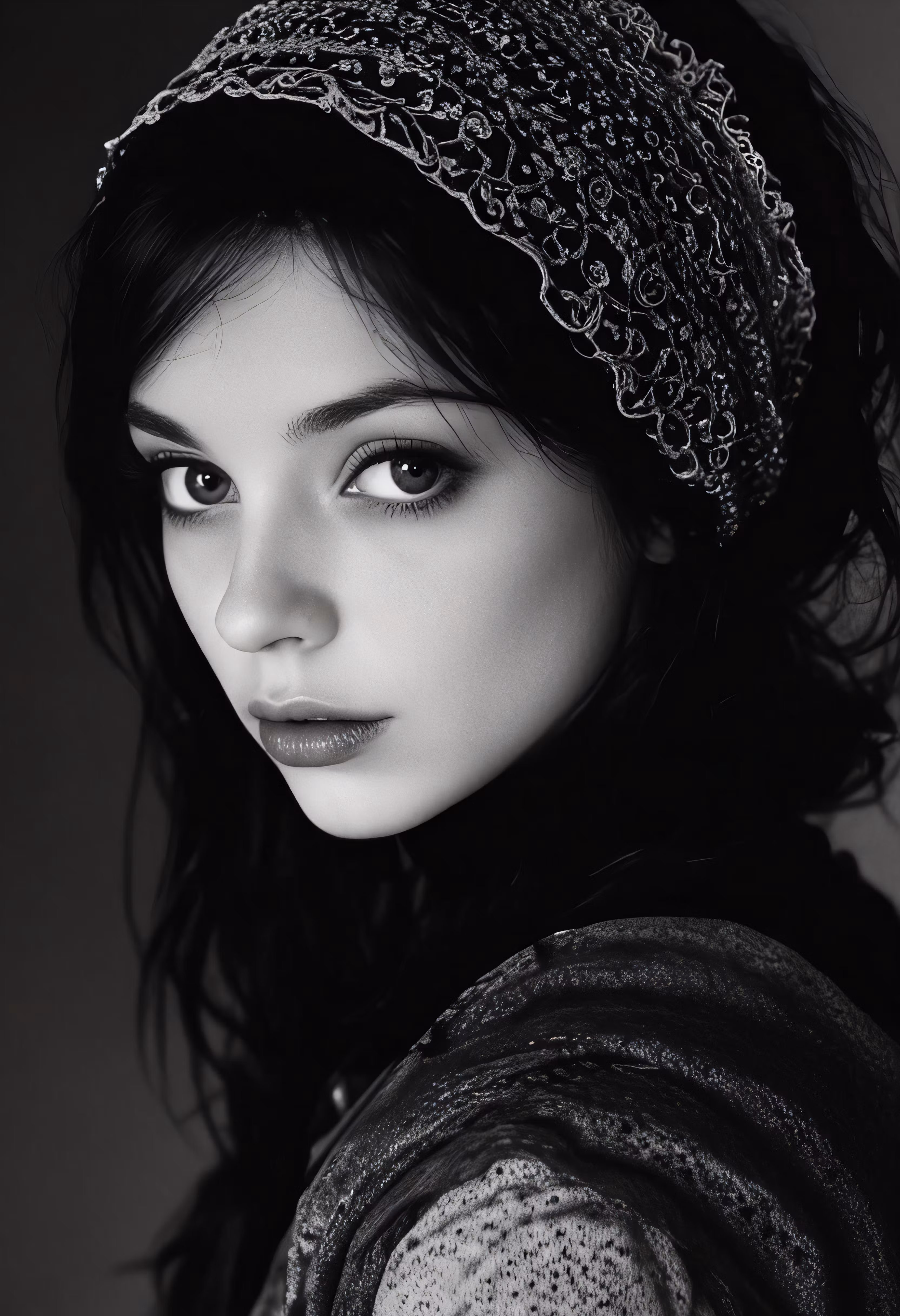 High resolution picture, free to use, black and white photograph of a young girl wearing a turban