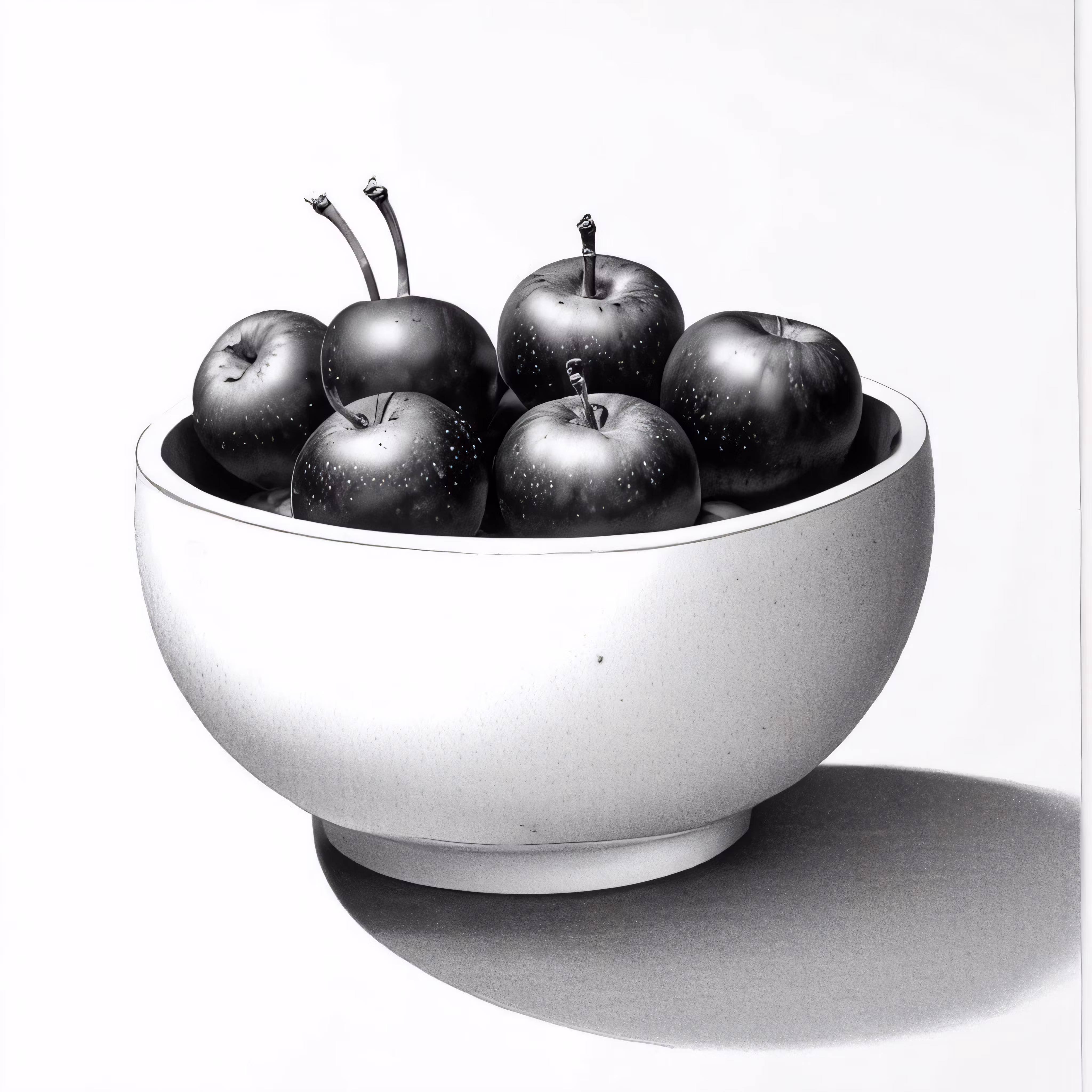 High resolution picture, free to use, black and white photograph of apples in a bowl