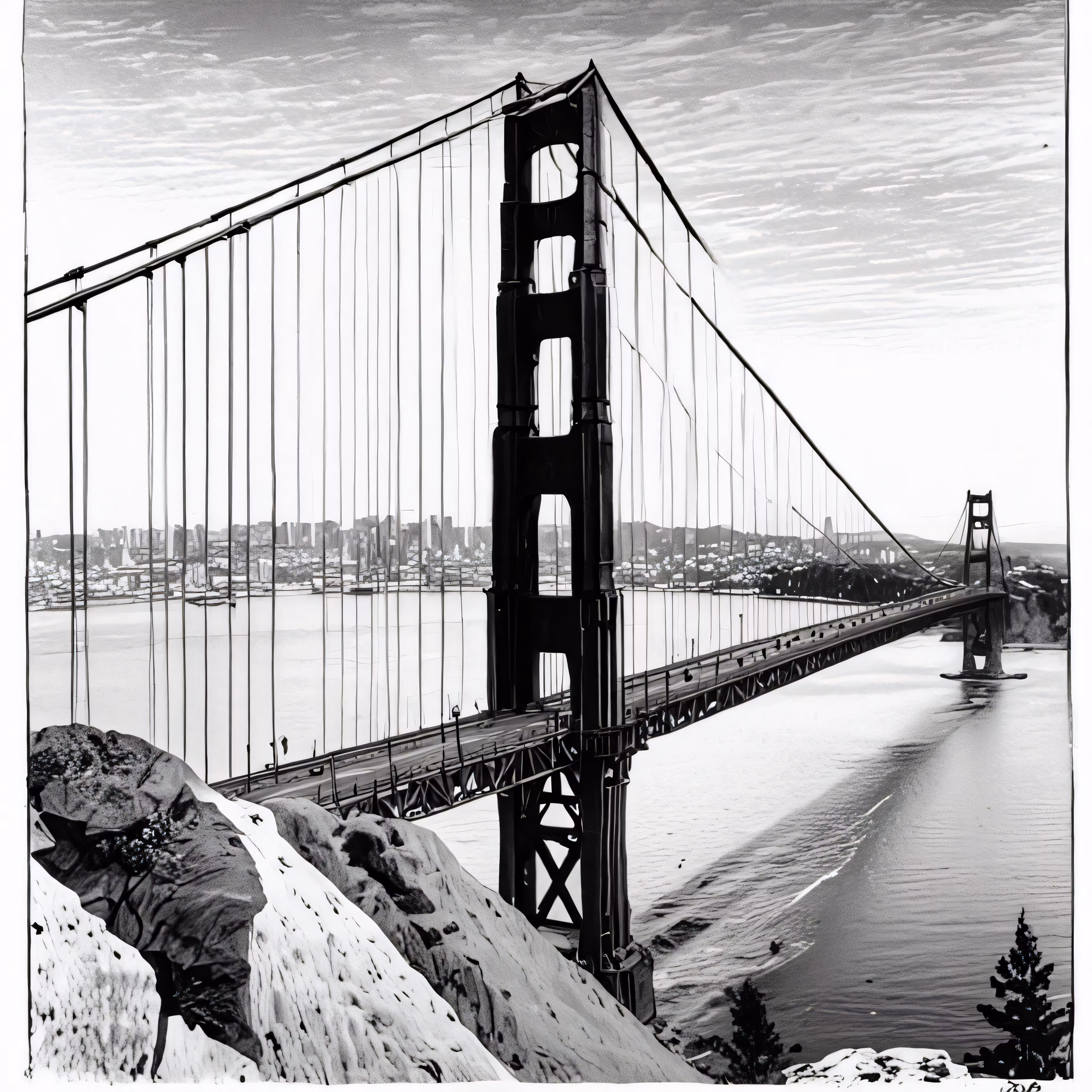High resolution picture, free to use, black and white photograph of the golden gate bridge