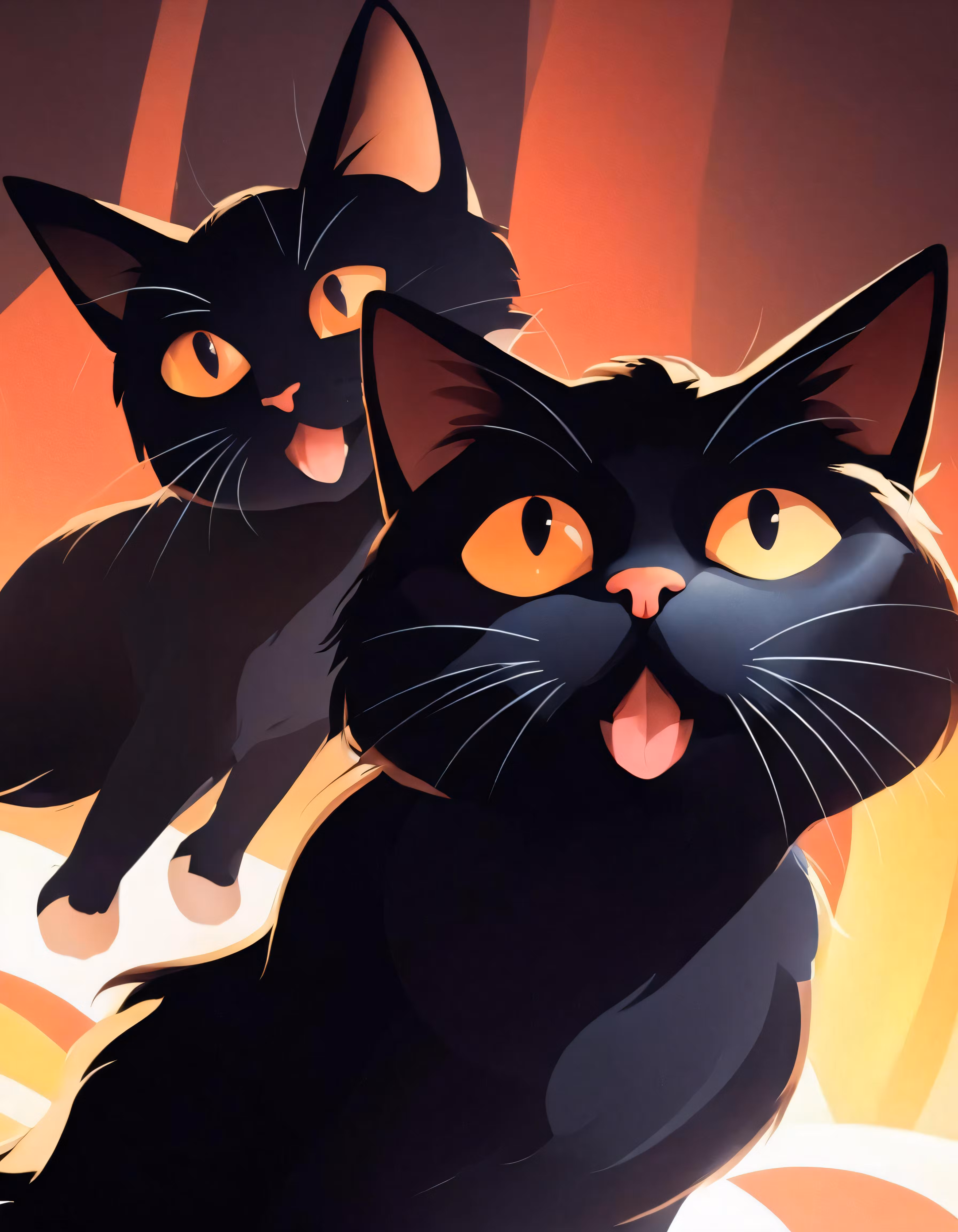 High resolution picture, free to use, black cat with big yellow eyes and the tail hanging down