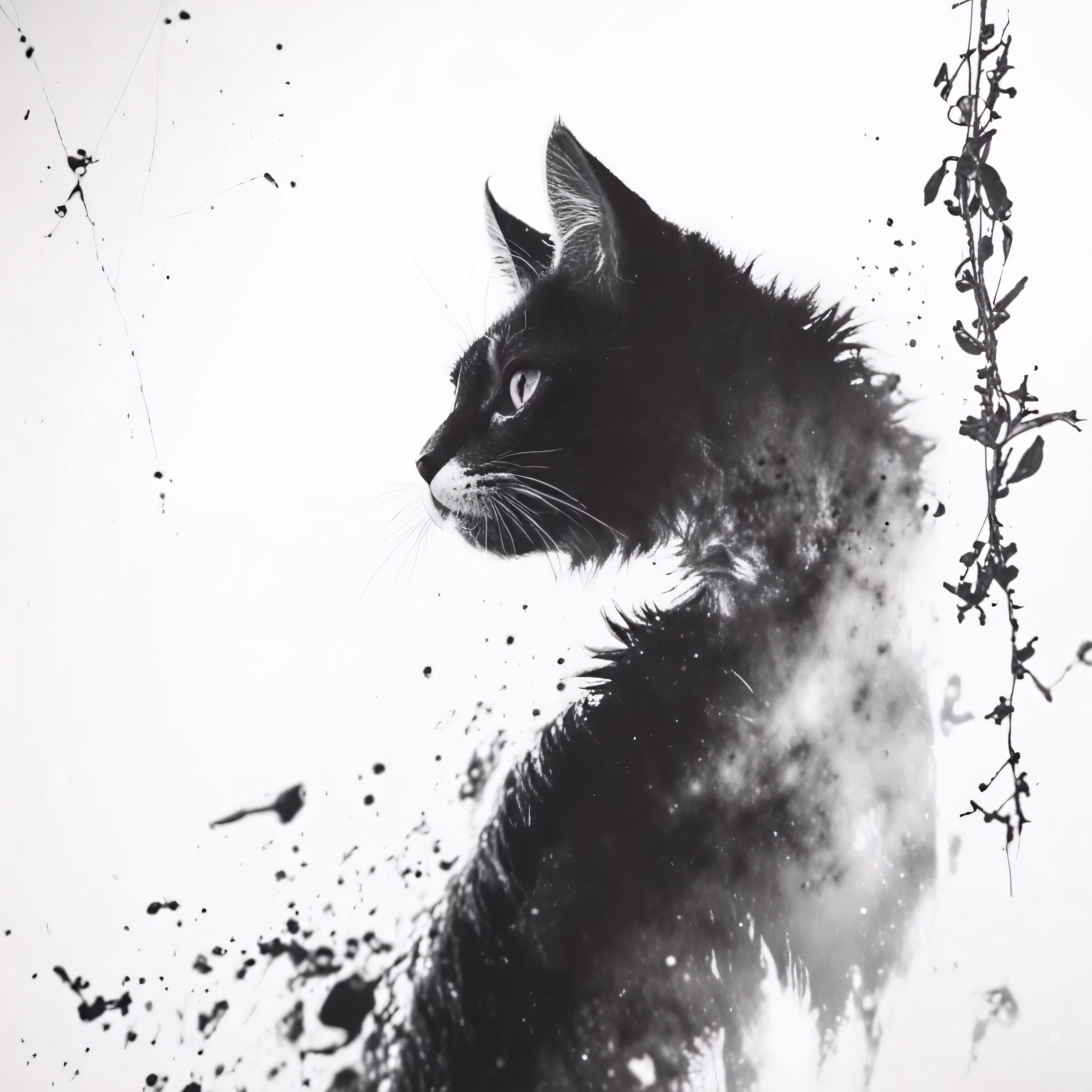 High resolution picture, free to use, black cat with white background looks out from under some water