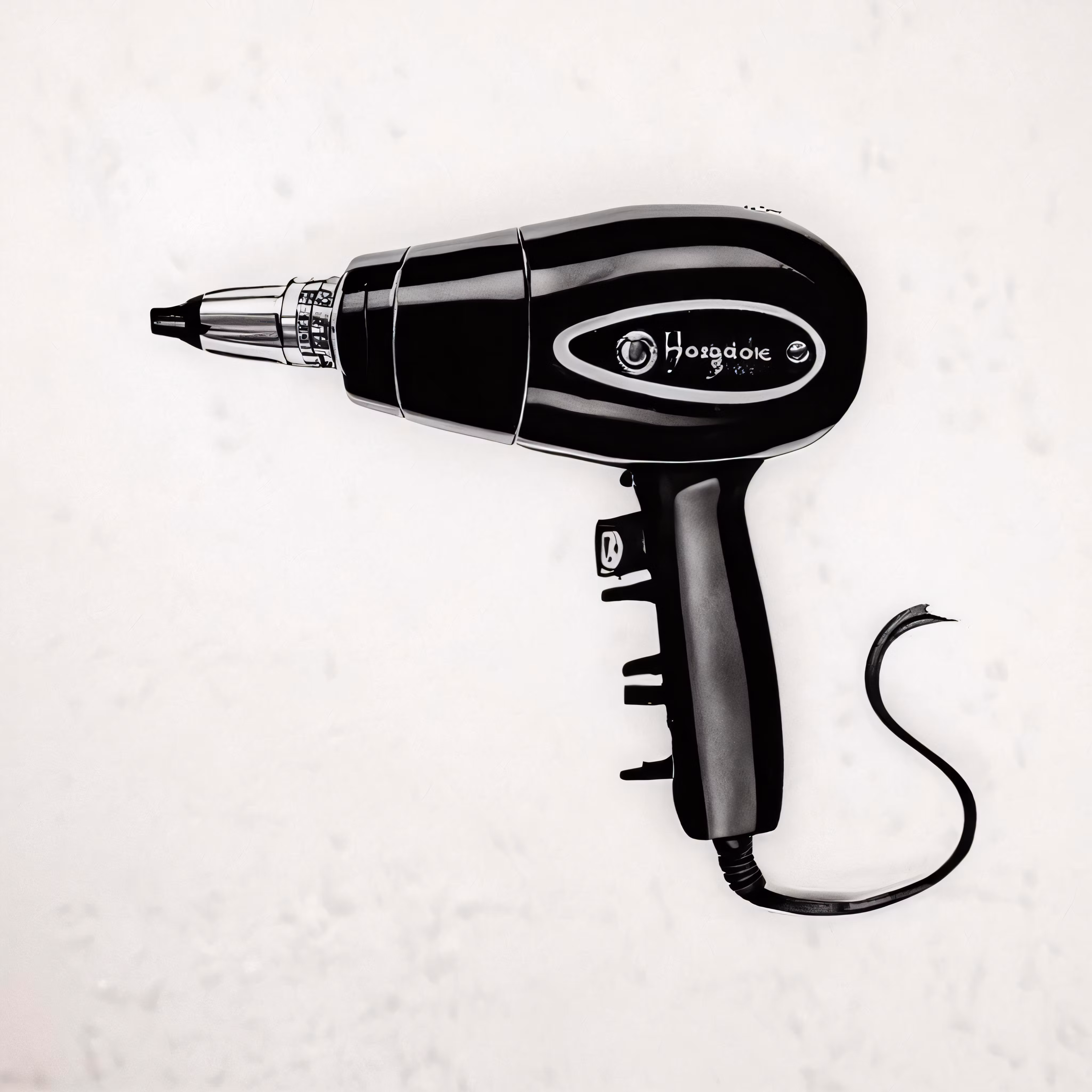 High resolution picture, free to use, black hair dryer attached to wall on a white wall