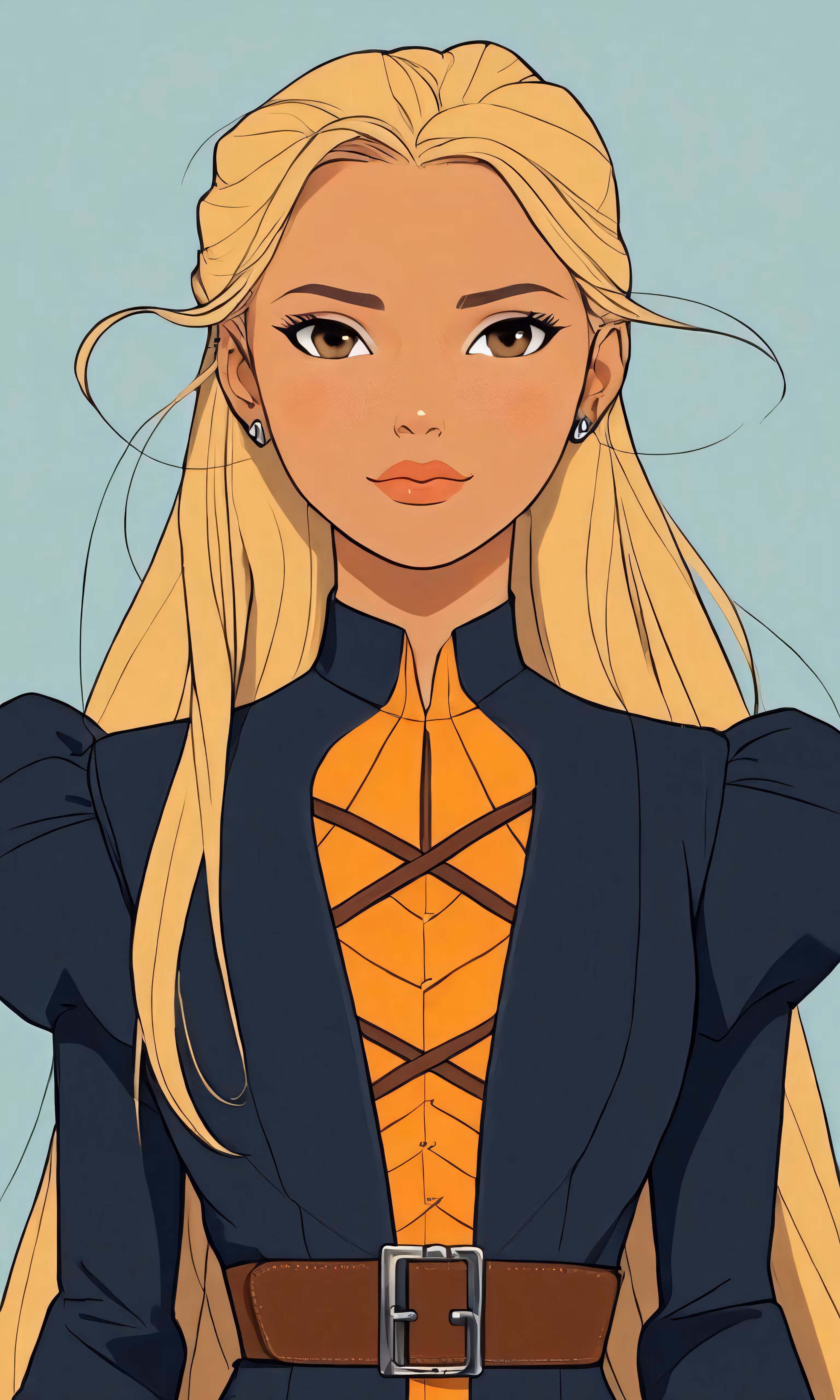 High resolution picture, free to use, blonde haired woman wearing blue and orange clothes