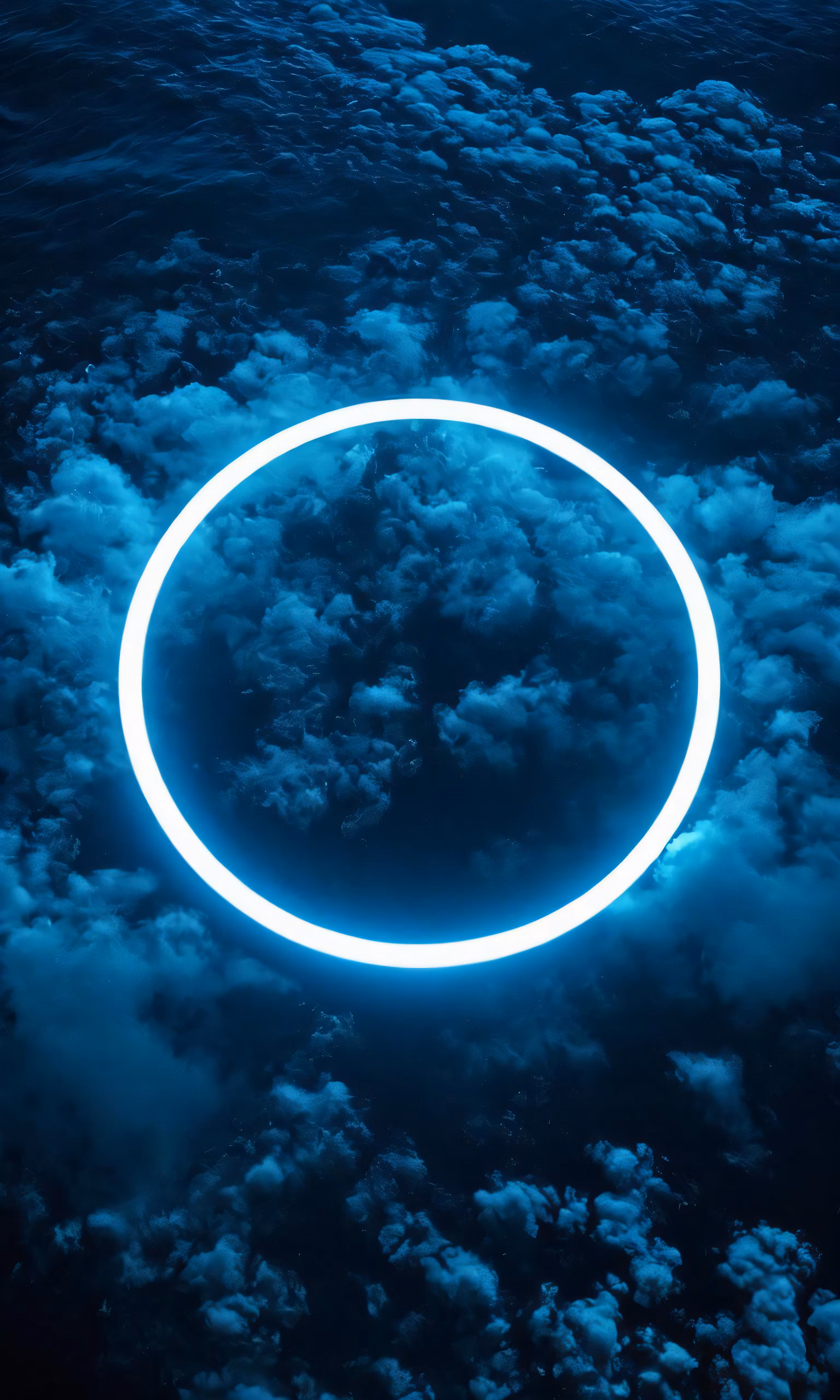 High resolution picture, free to use, blue glowing circle on the sky with cloud clouds