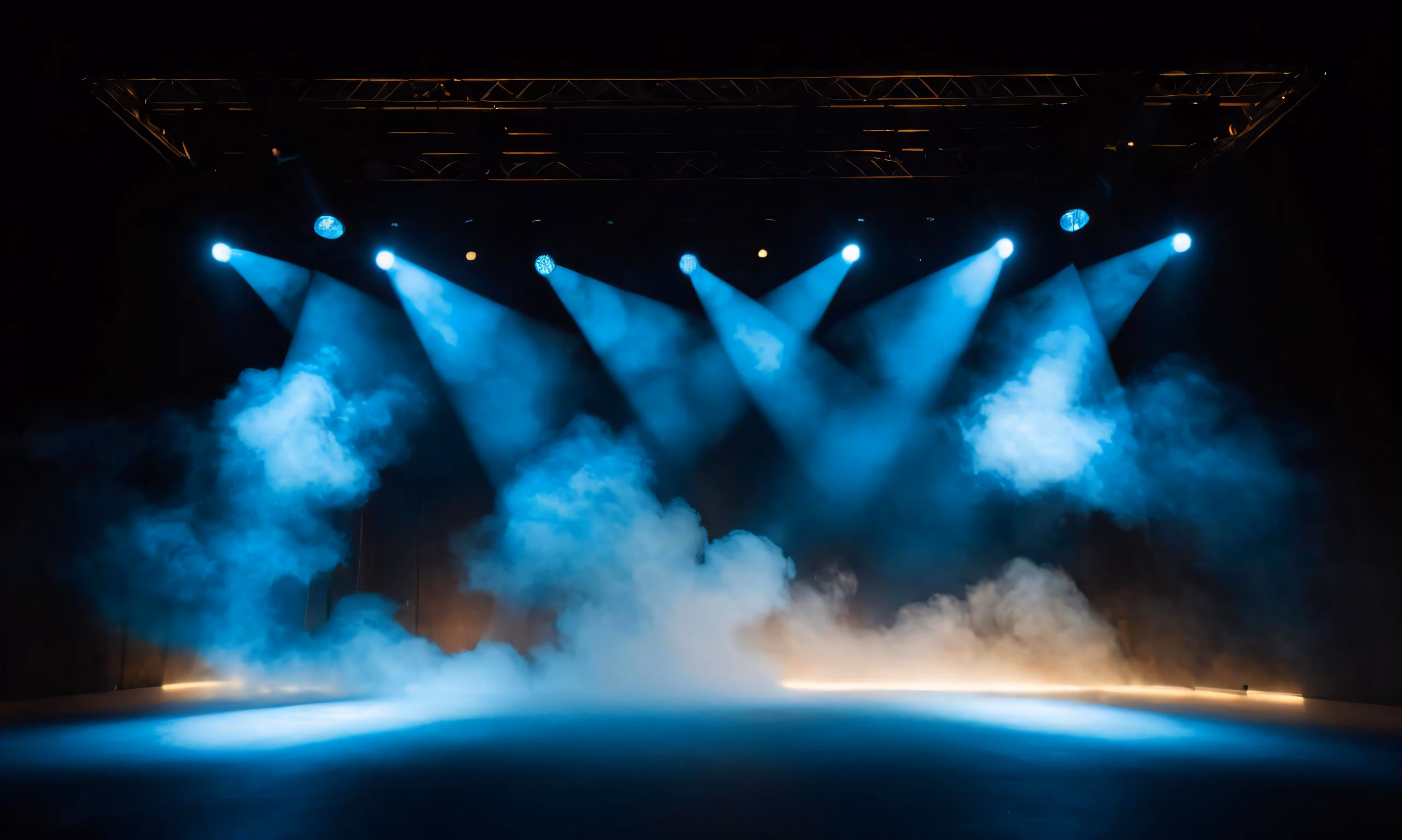 High resolution picture, free to use, blue light at stage with smoke coming from it