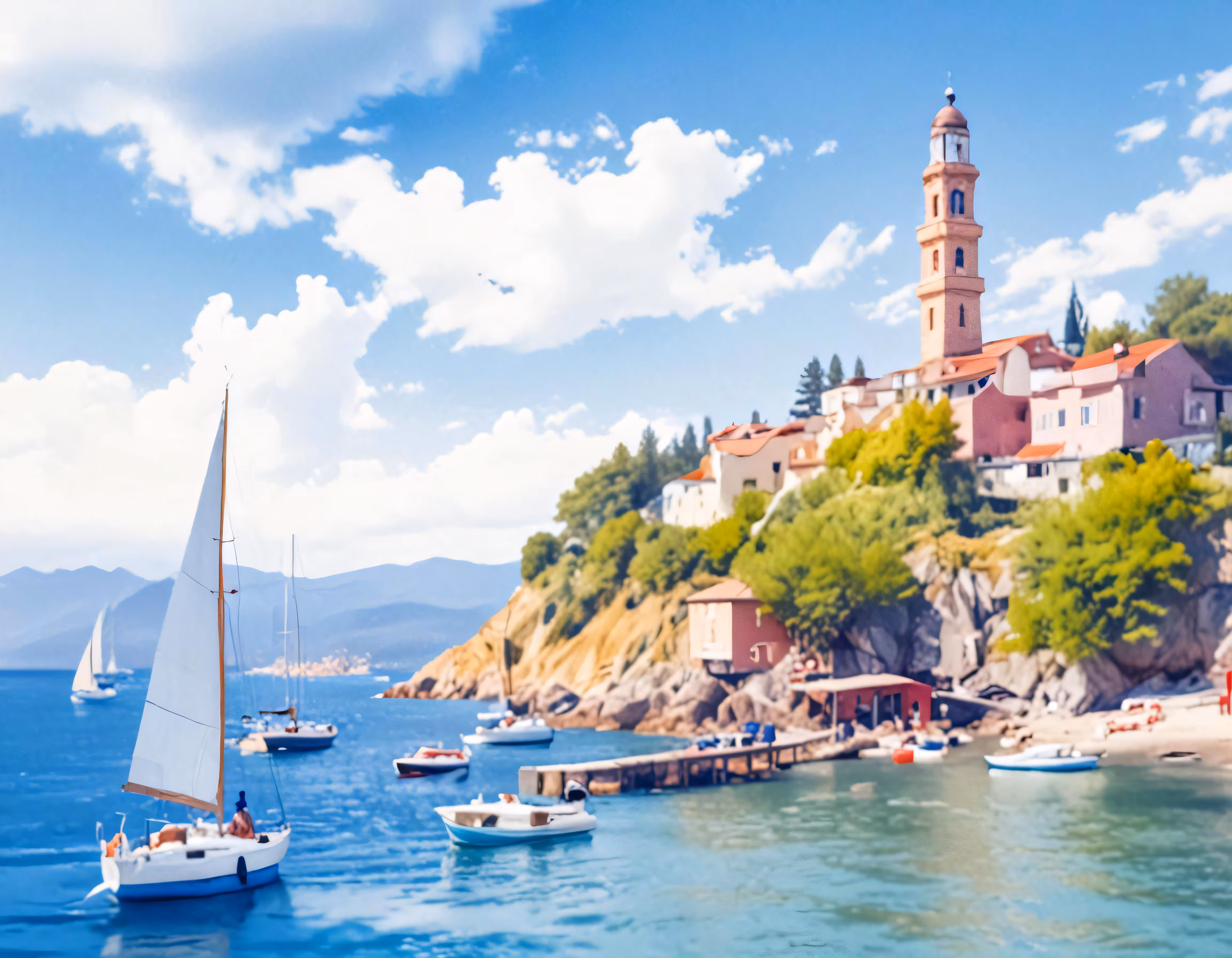 High resolution picture, free to use, boats sailing on the ocean near a island in the background